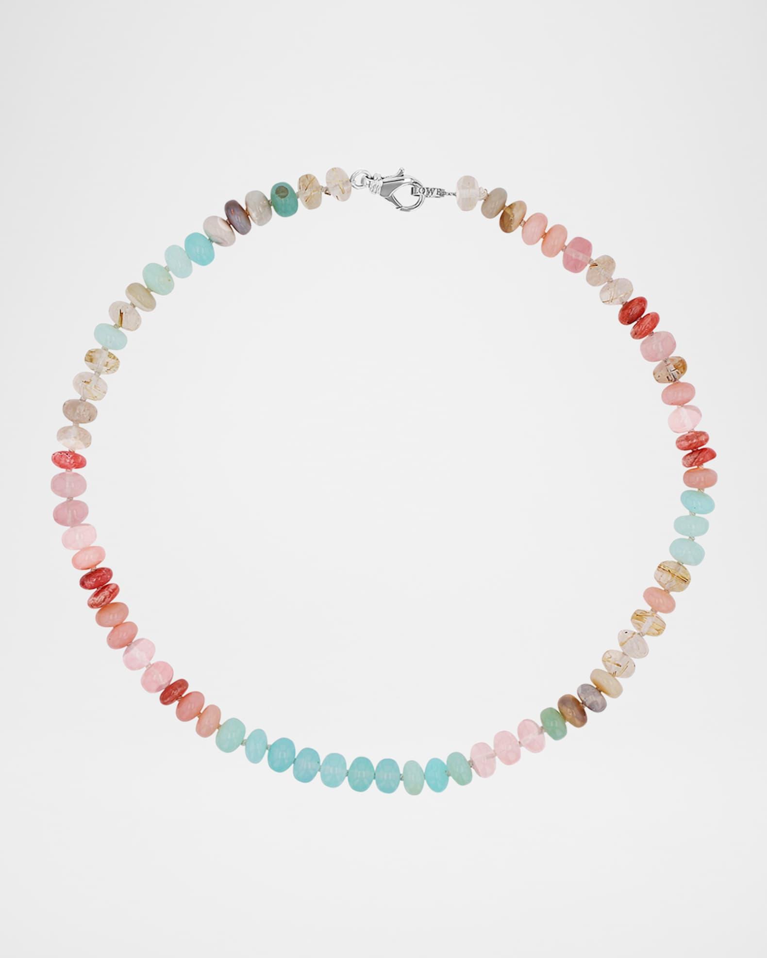 Light Opal Mix Bead Knotted Necklace