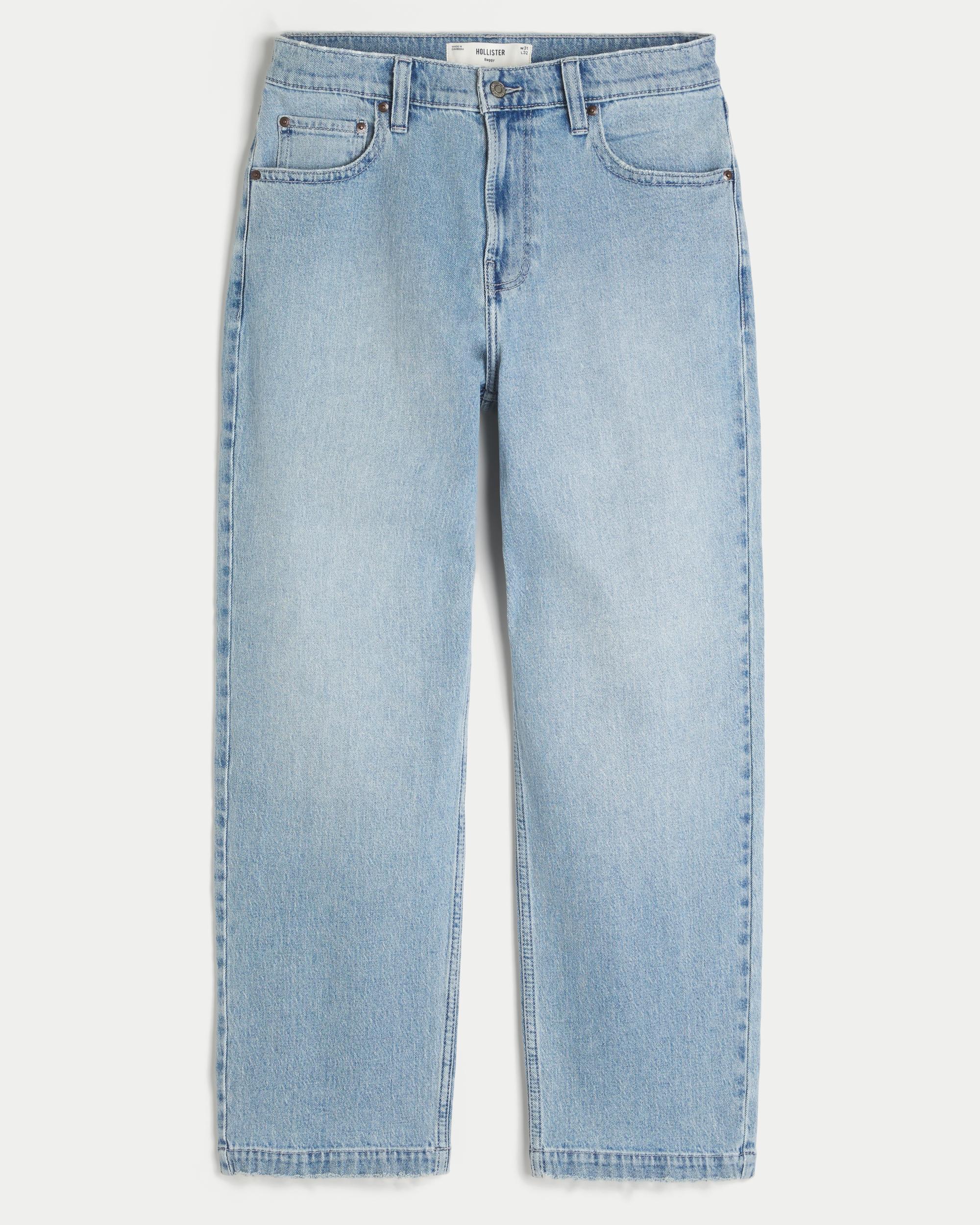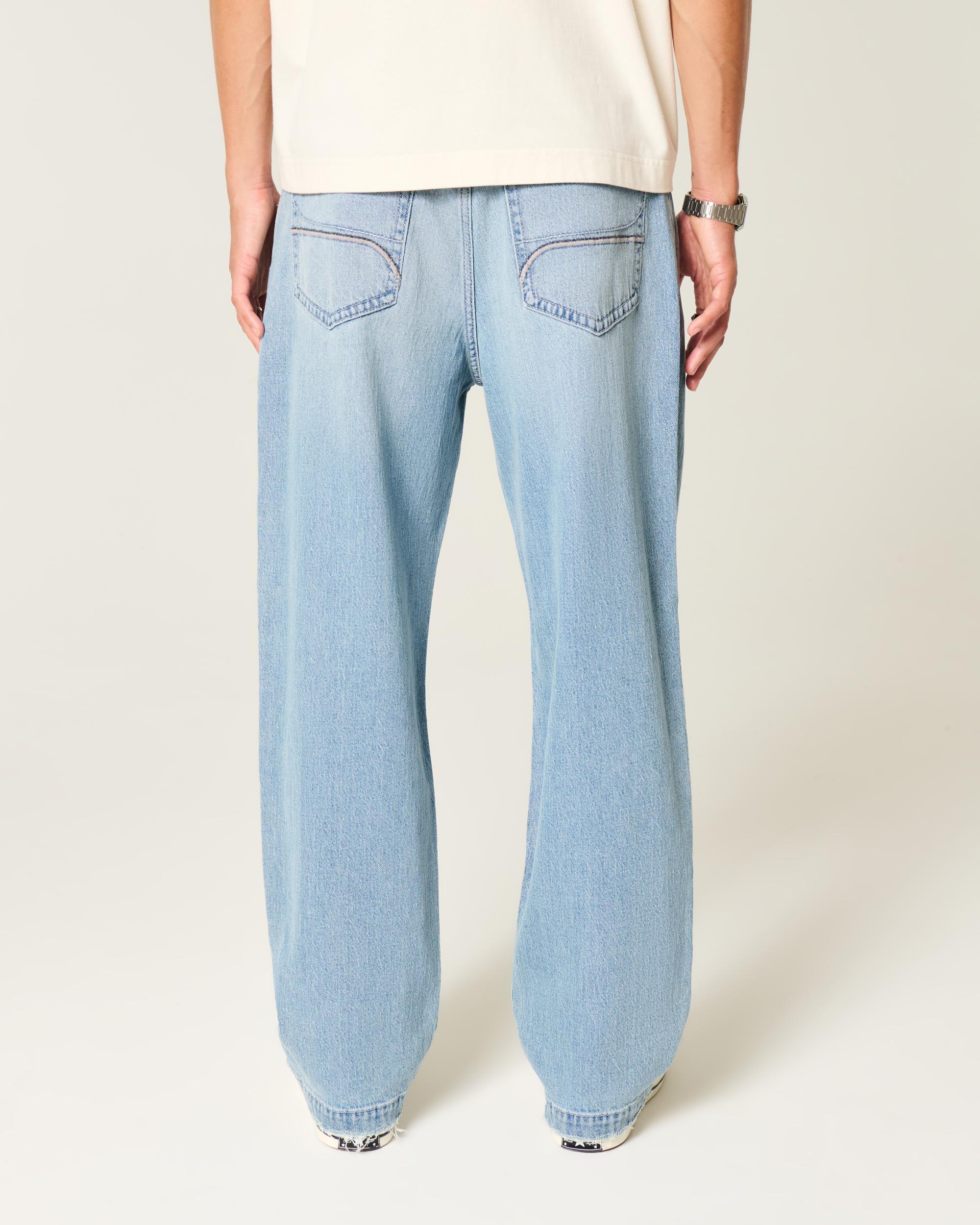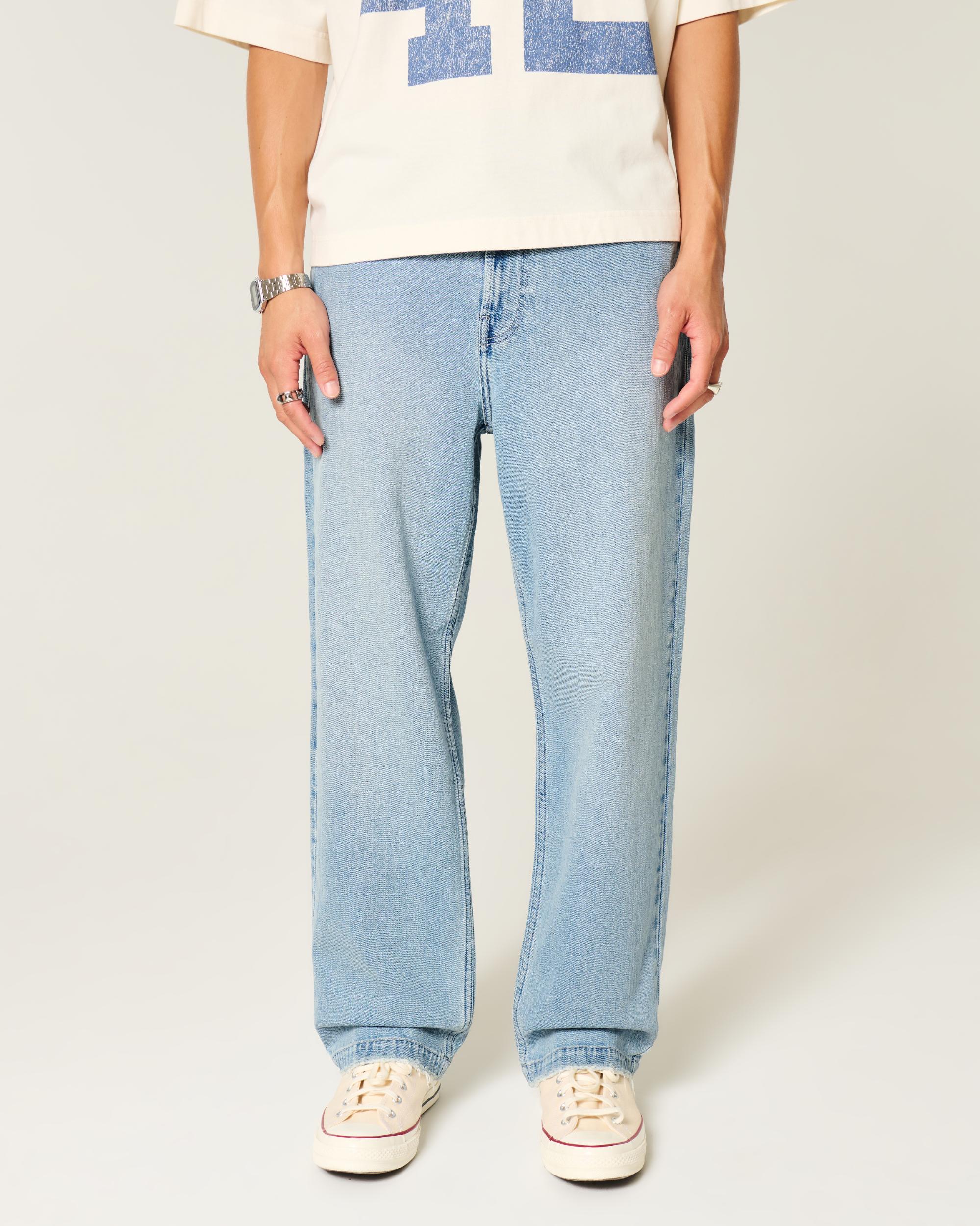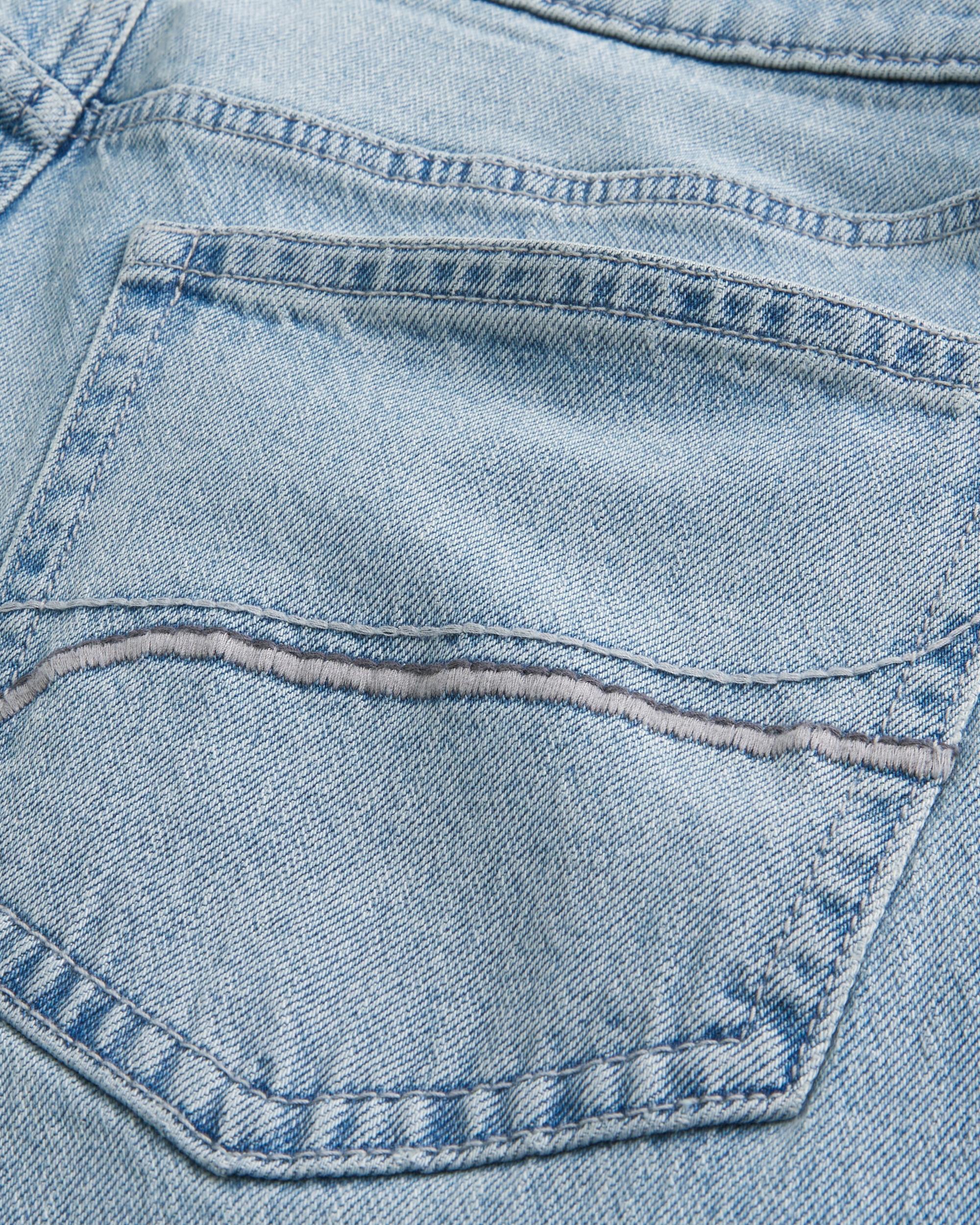 Comfortable denim jeans in a light wash, designed with a baggy leg. Fading, embroidered detail at back pocket.