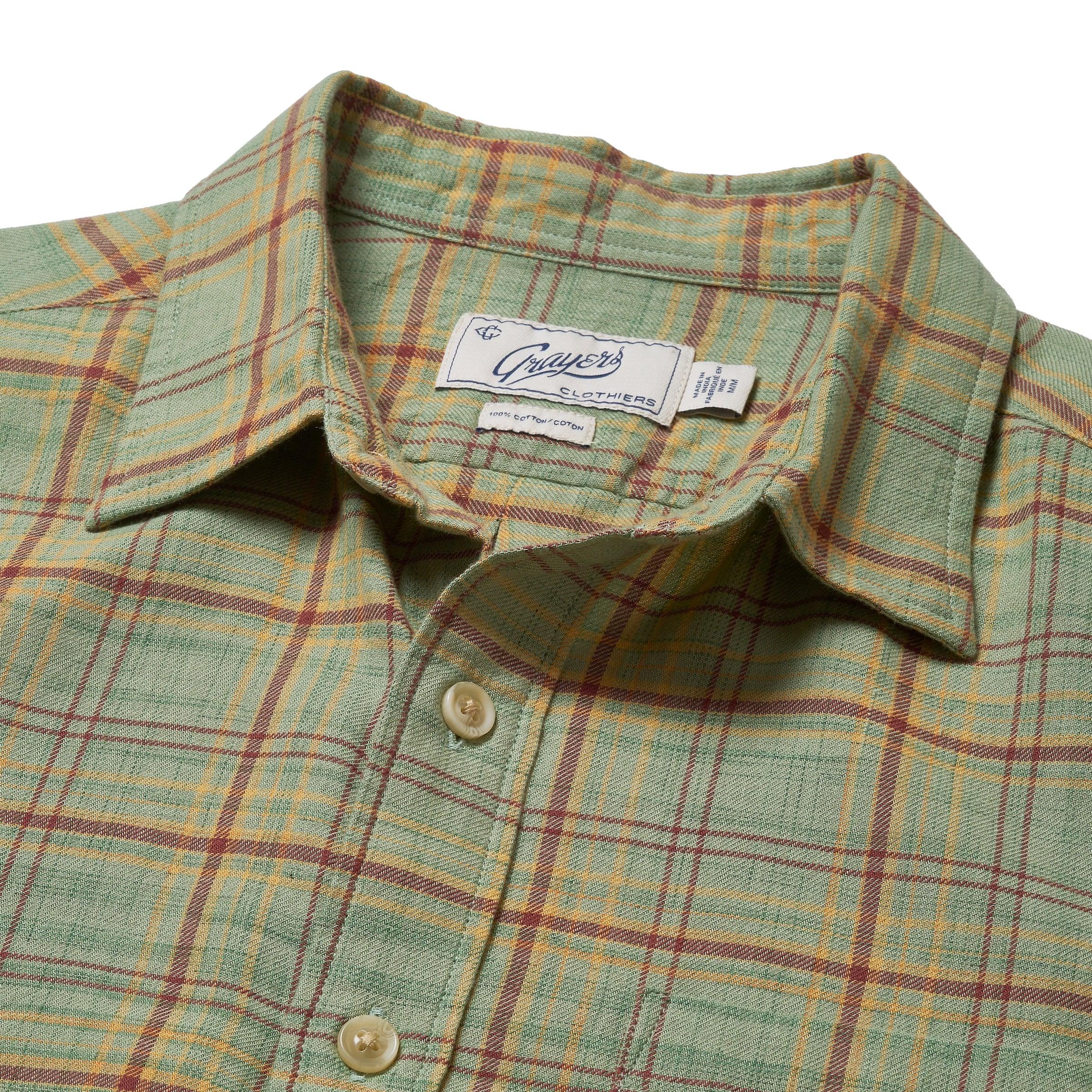 We spend quite a bit of time on the road and a good fair amount in the weaving mills of India. Our travels through Chennai (formerly Madras), the home of the madras cloth, is always a highlight. The local weavers perfected the art of weaving loose "power loom" fabrics into the recognizable "madras cloth." This season we dug into the 1970's archives of the weaving mill that has been in the same family for over 50 years. The soft and light cloth is ideal for the hot and humid weather of the subcontinent. We took the concept for a spin, weaving a lightweight twill in the same techniques as the old madras cloths. Wear it with our Thompson shorts or pair it with our Edward denim. ----Details---- Spread collar Single chest pocket Curved hem Enzyme washed for a softer hand Spaced dyed yarn Traditional power loom twill Natural button Imported ----Materials---- 100% Cotton ----Size & Fit---- Measuring Method: All measurements are in inches and based on a “flat” garment, as shown below. For comparison with one of your existing garments, please lay garment on a flat surface and follow the key measurement points. For chest and neck, if you double the flat measurement, you will get close to the full body measurement. ----Care---- Machine Wash Warm With Like Colors Do Not Bleach Tumble Dry Low Use Cool Iron If Necessary