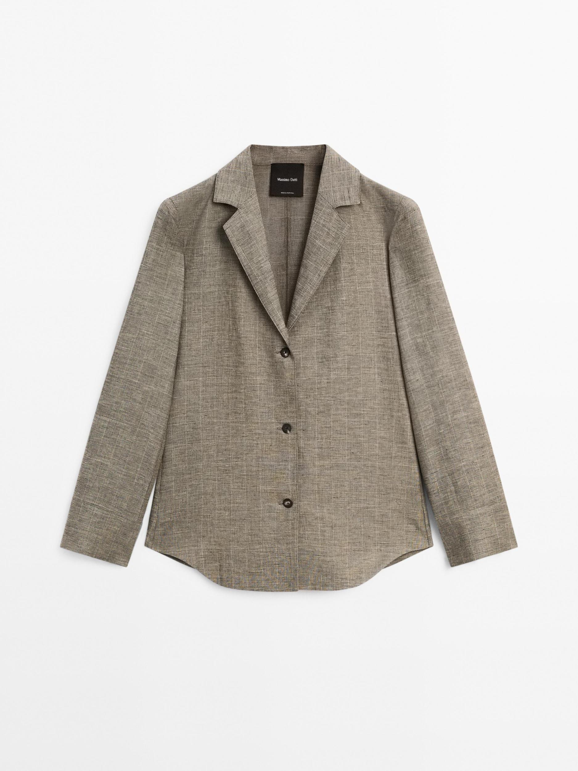 Blazer made of a cotton blend fabric, Notched lapel collar, Long sleeves with buttoned cuffs, Button-up front, Check print, Matching garment available, Wide and relaxed silhouette, not tailored