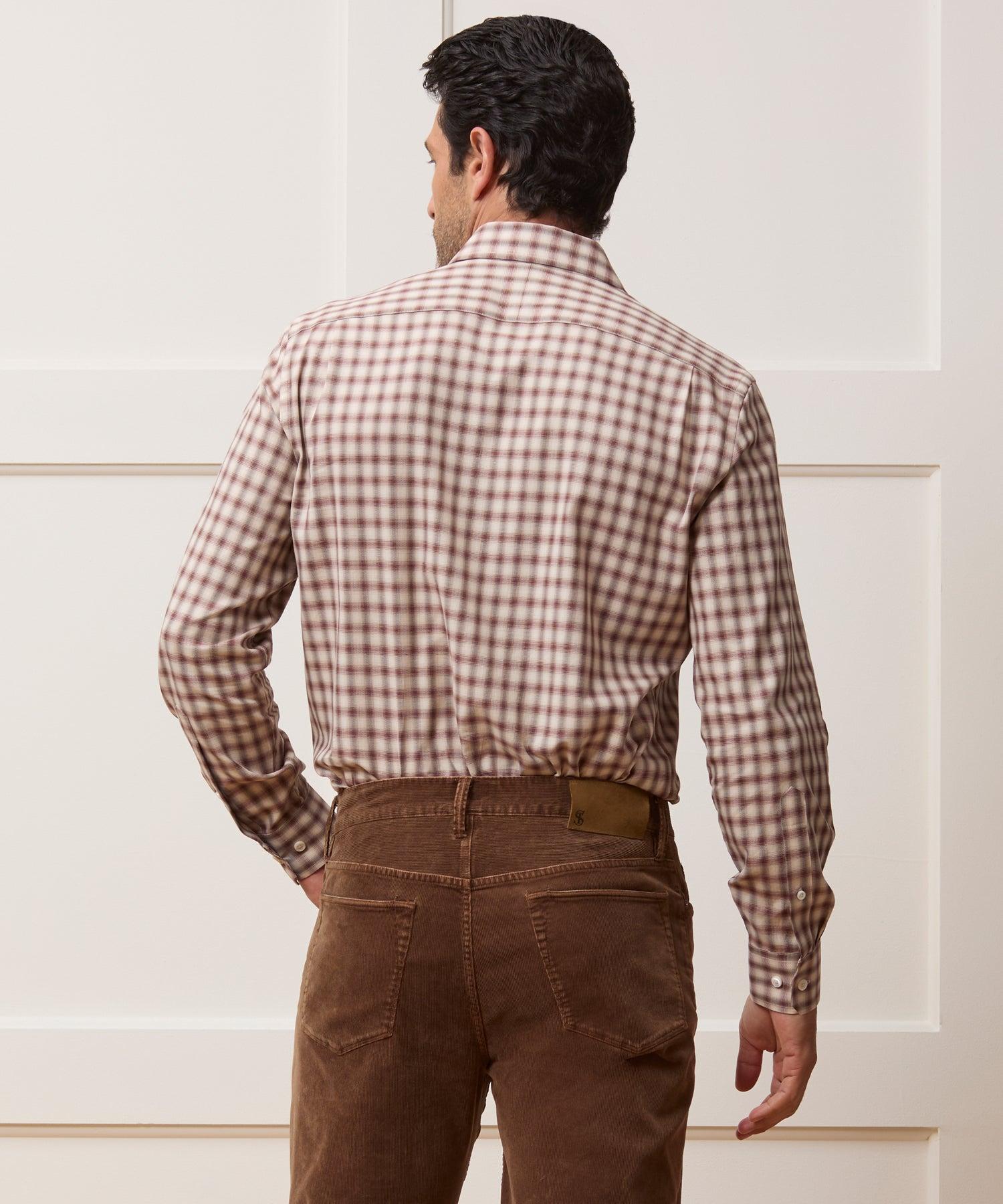 This chic dress shirt is a handsome update on a closet essential. Expertly constructed for a flattering fit, it’s crafted from a luxurious Italian cotton flannel — but not the flannel you’re familiar with. This one is incredibly lightweight and exceptionally soft, perfect for three-season wear on its own or beneath a sport coat. Point collars, by the way, are a bit more traditional than spread collars, which are the same length, but in a point collar, the points themselves are closer together. This shirt is bound to become your new go-to for any occasion that calls for putting your best foot forward. 100% Cotton Slim Fit Model is 6'2" and is wearing a size 16 Point Collar Button Cuffs Locker Loop at Back Fabric from Italy Garment Made in Vietnam Machine Wash Warm Below 40° C. Do Not Bleach. Dry Clean Any Solvent Except Trichloroethylene. Do Not Tumble Dry. Warm Iron As Needed Style SH2074933