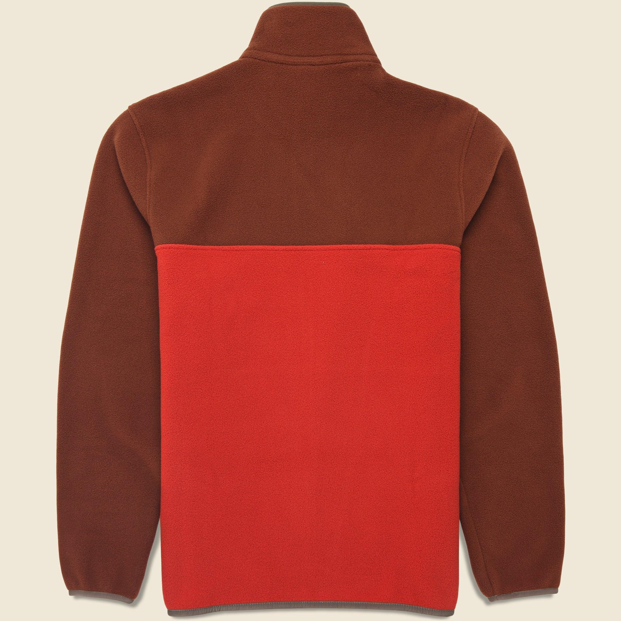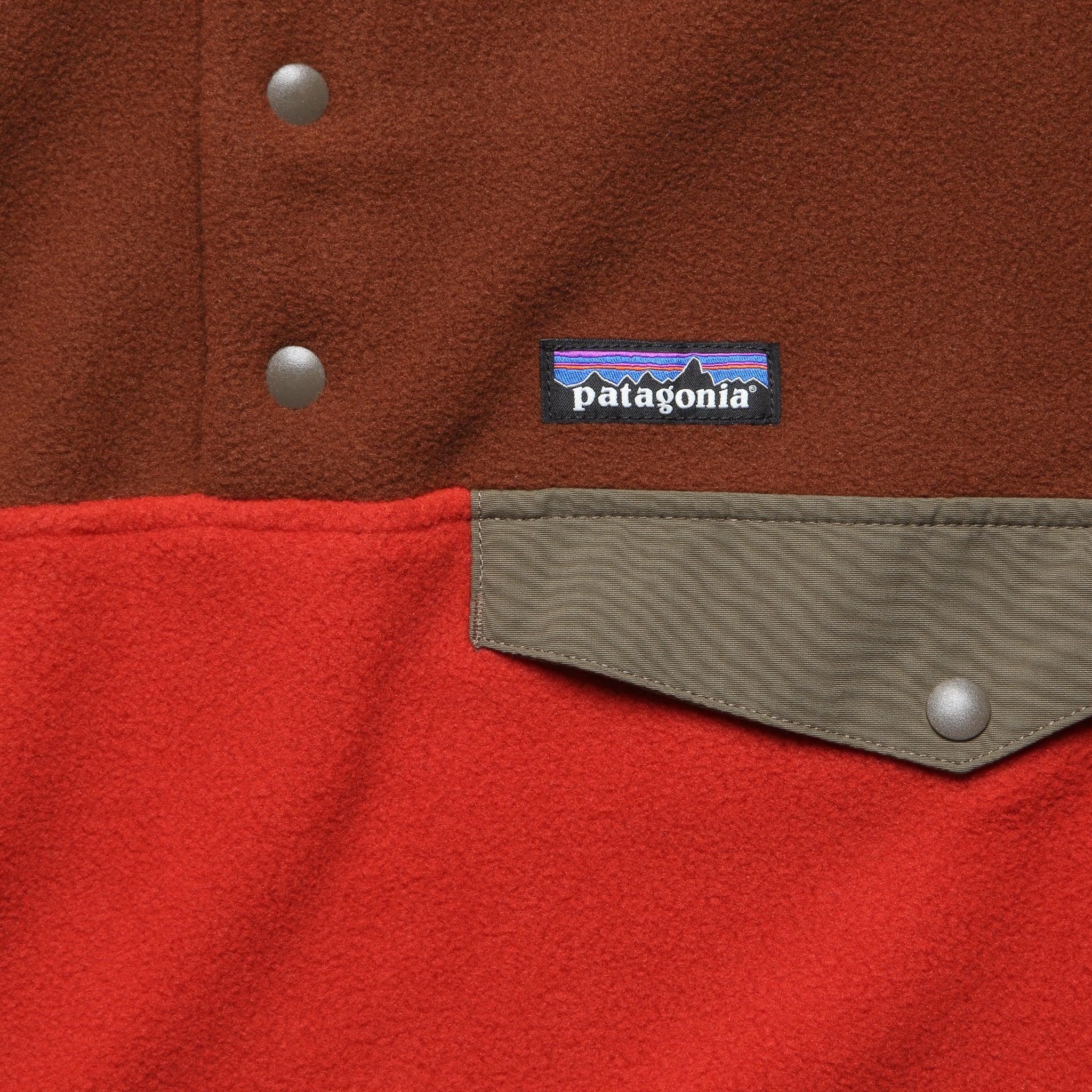 This Synchilla Snap-T Pullover from Patagonia is made with lightweight, warm 100% recycled polyester fleece to make it an eco-friendly layer that’s velvety smooth, wicks moister and dries quickly. It has a perfectly relaxed fit that runs true to size and comes with a single snapped chest pocket, a classic pullover silhouette with a four-snap placket, and a pair of handwarmer pockets to keep those mitts nice and toasty when the cold starts to bite. Lightweight recycled polyester fleece Recycled nylon faille placket with a DWR finish Stand collar with a 4-snap closure placket Classic pullover silhouette Single chest pocket with a snap closure Two handwarmer pockets Spandex binding at the cuffs and hem Relaxed fit that runs true to size We recommend taking your normal size Materials: 100% recycled polyester The following measurements are for size Medium: Chest: 44” | Shoulder: 18” | Sleeve: 35” | Length: 29”