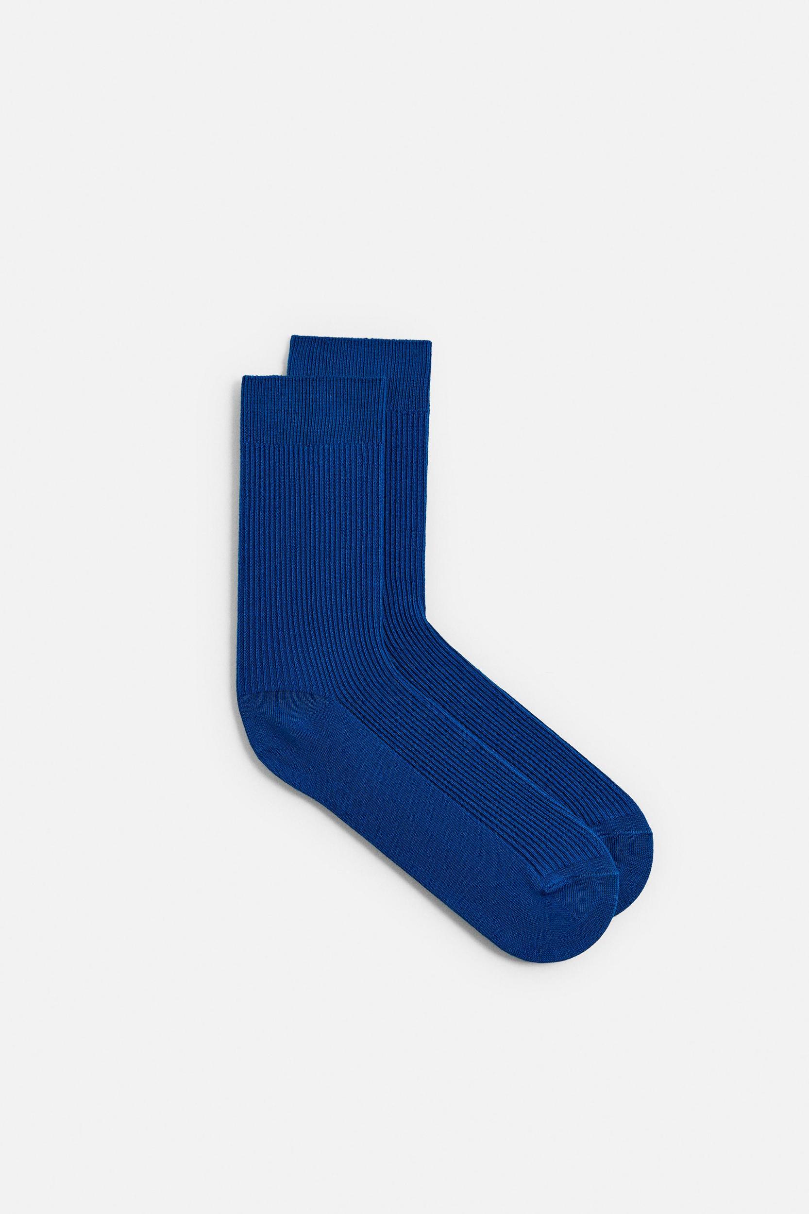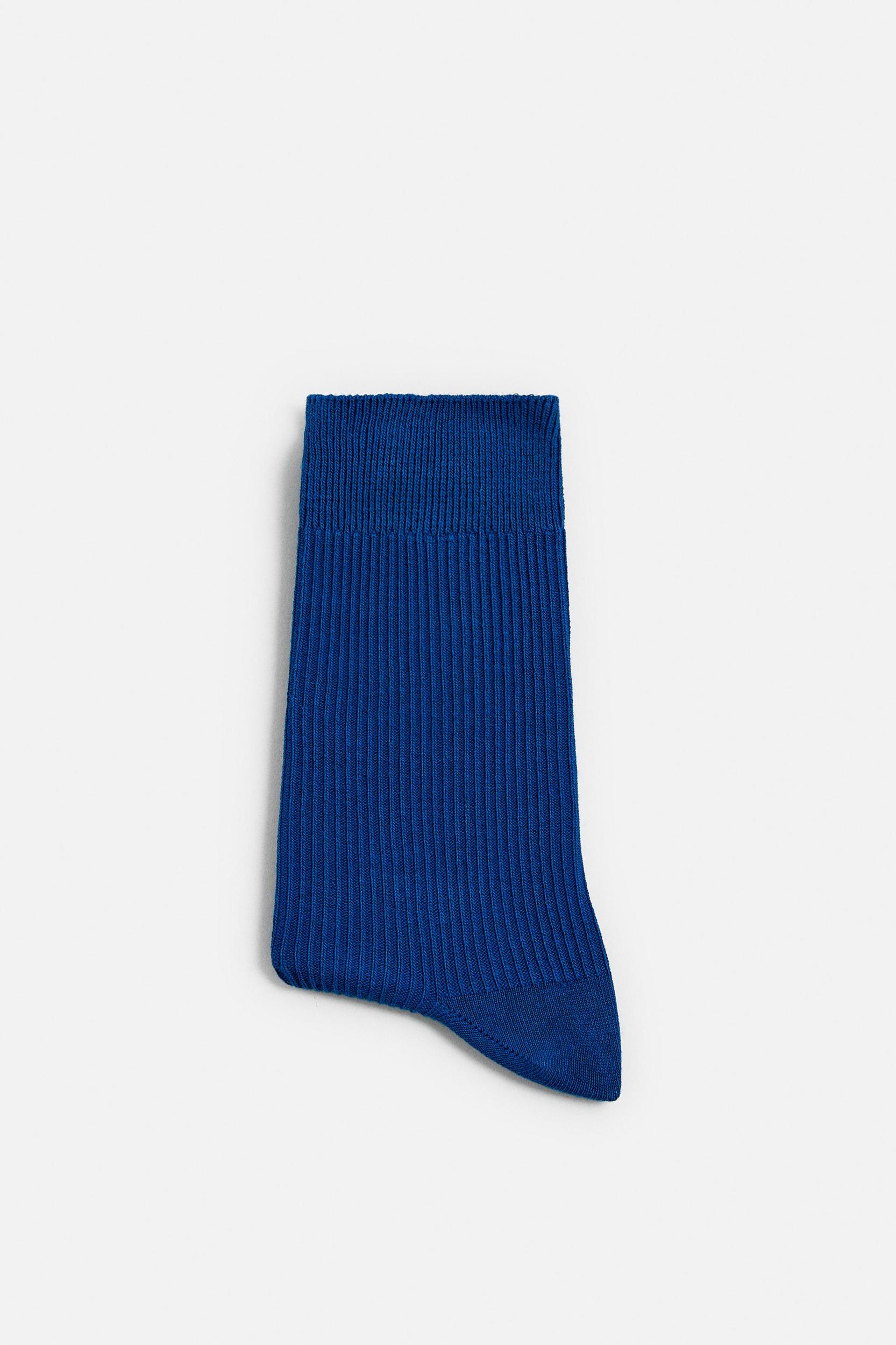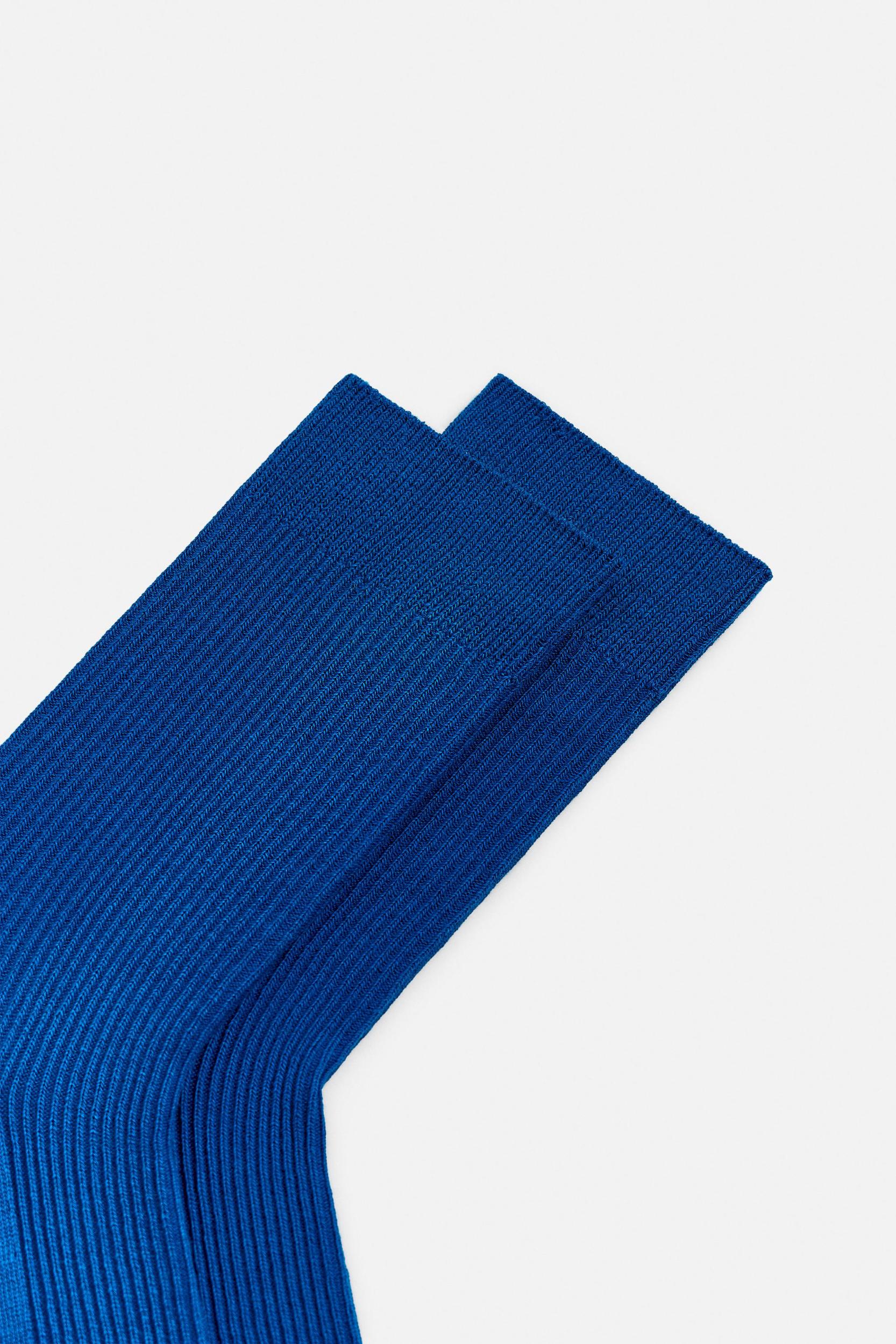 Lightweight socks knitted in cotton blend yarn. Finished with elastic ribbing