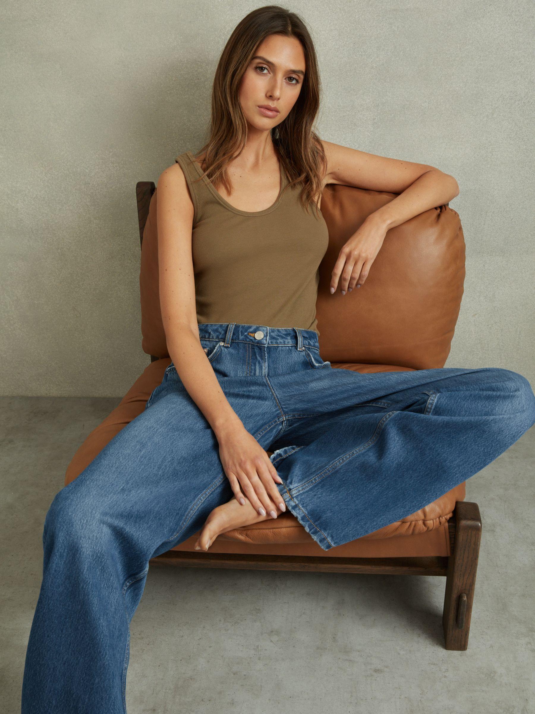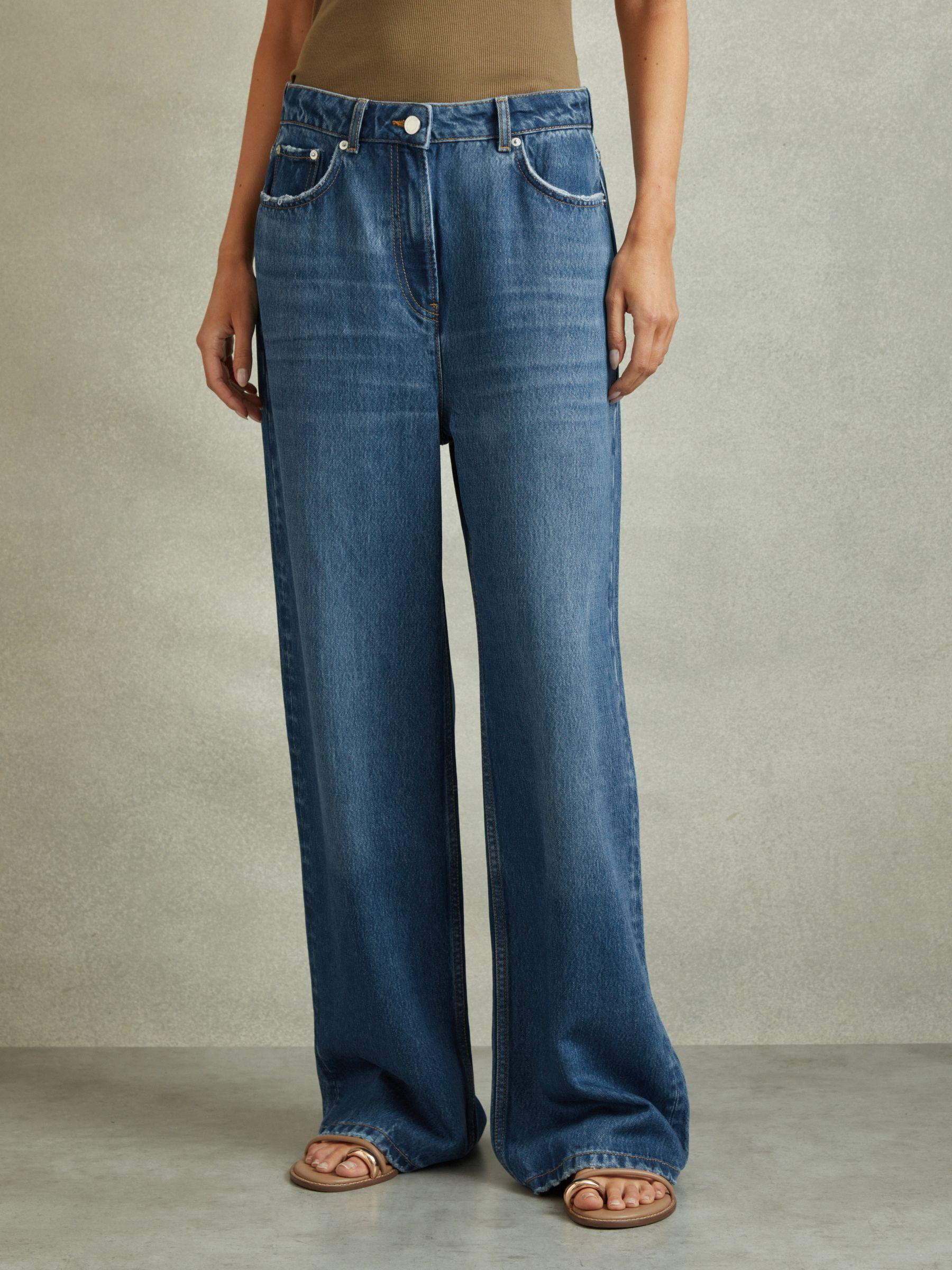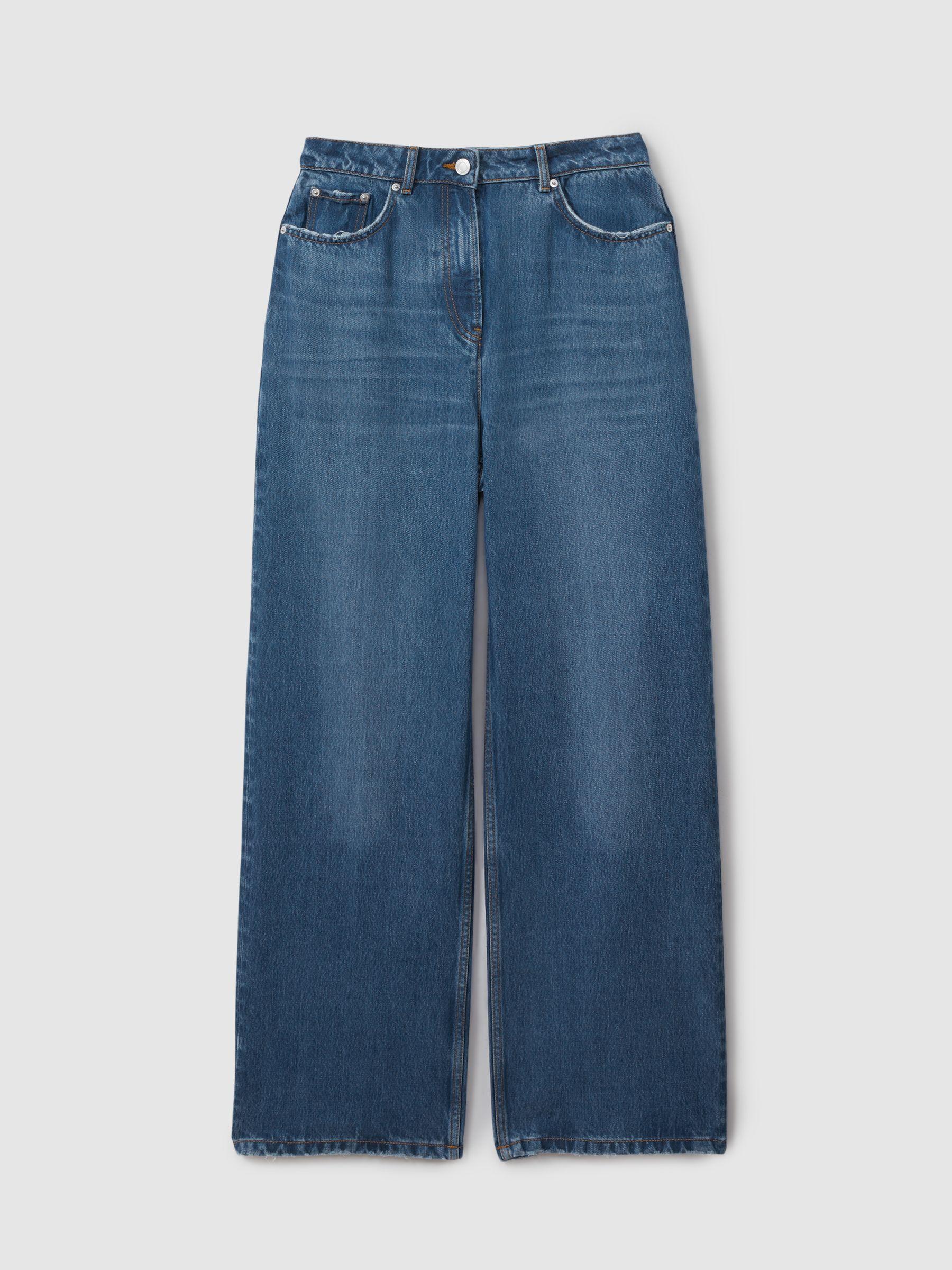 Shop for Reiss Lightweight Viscose Blend Relaxed Jeans in Mid Blue online at REISS USA