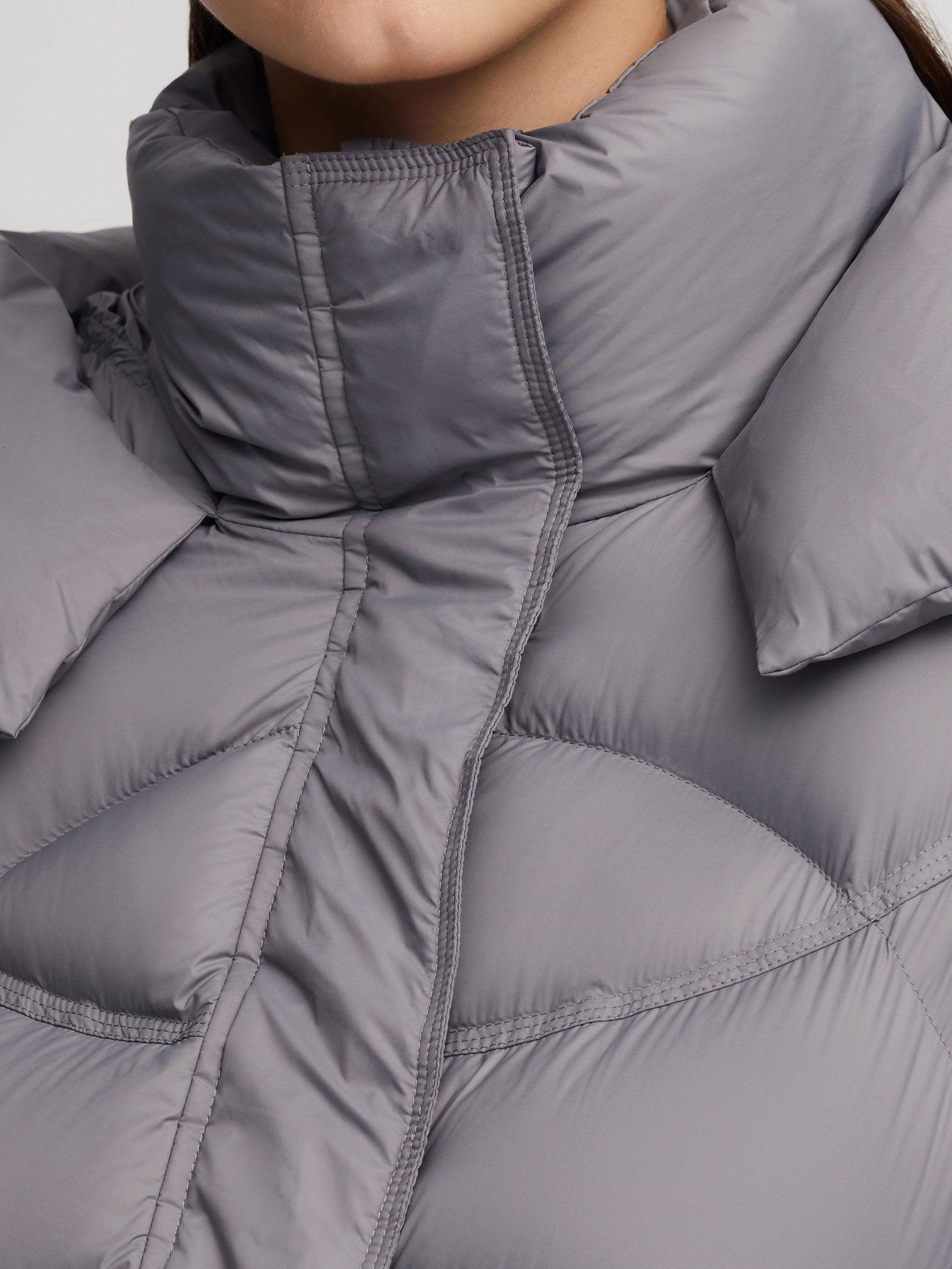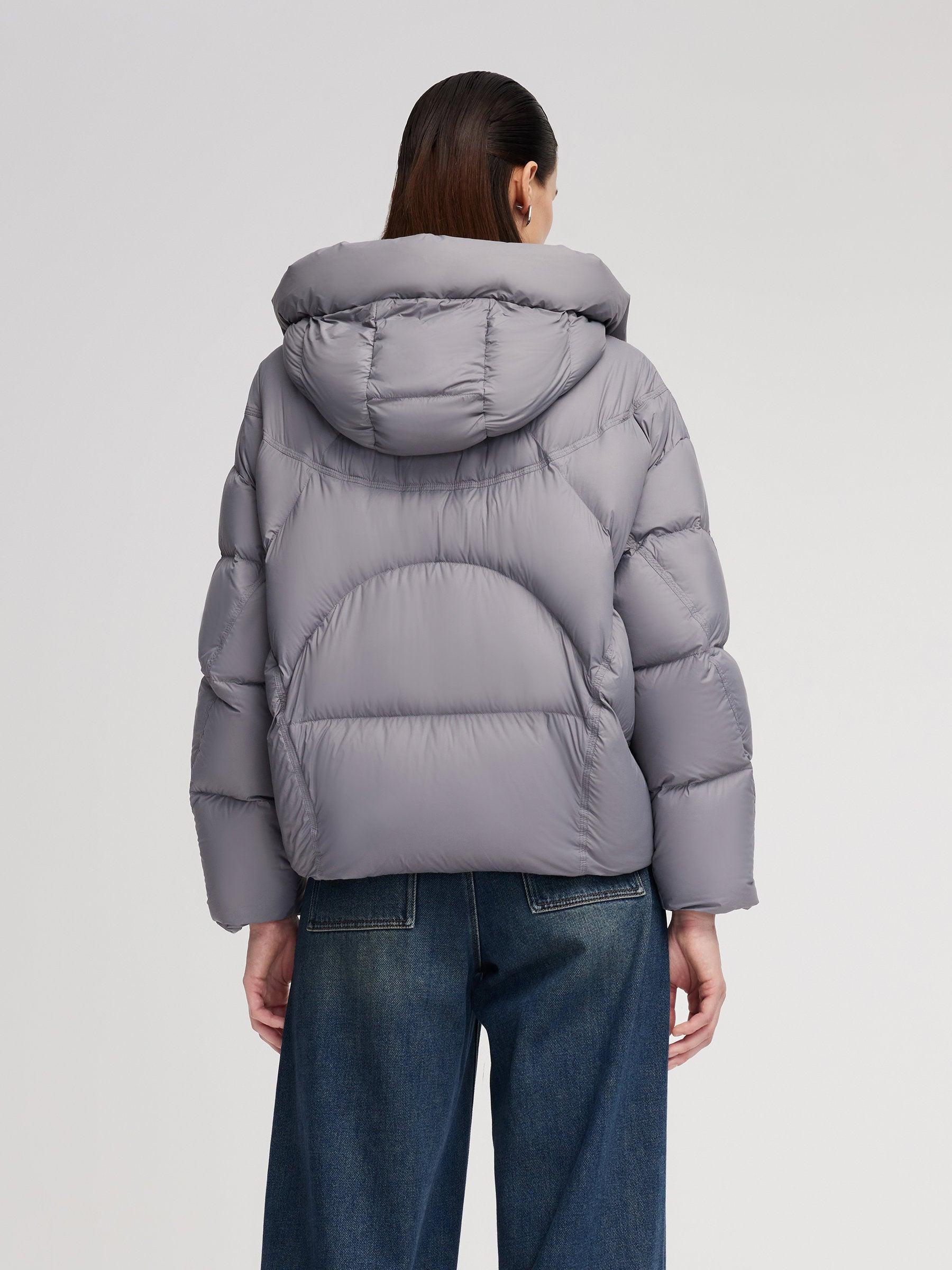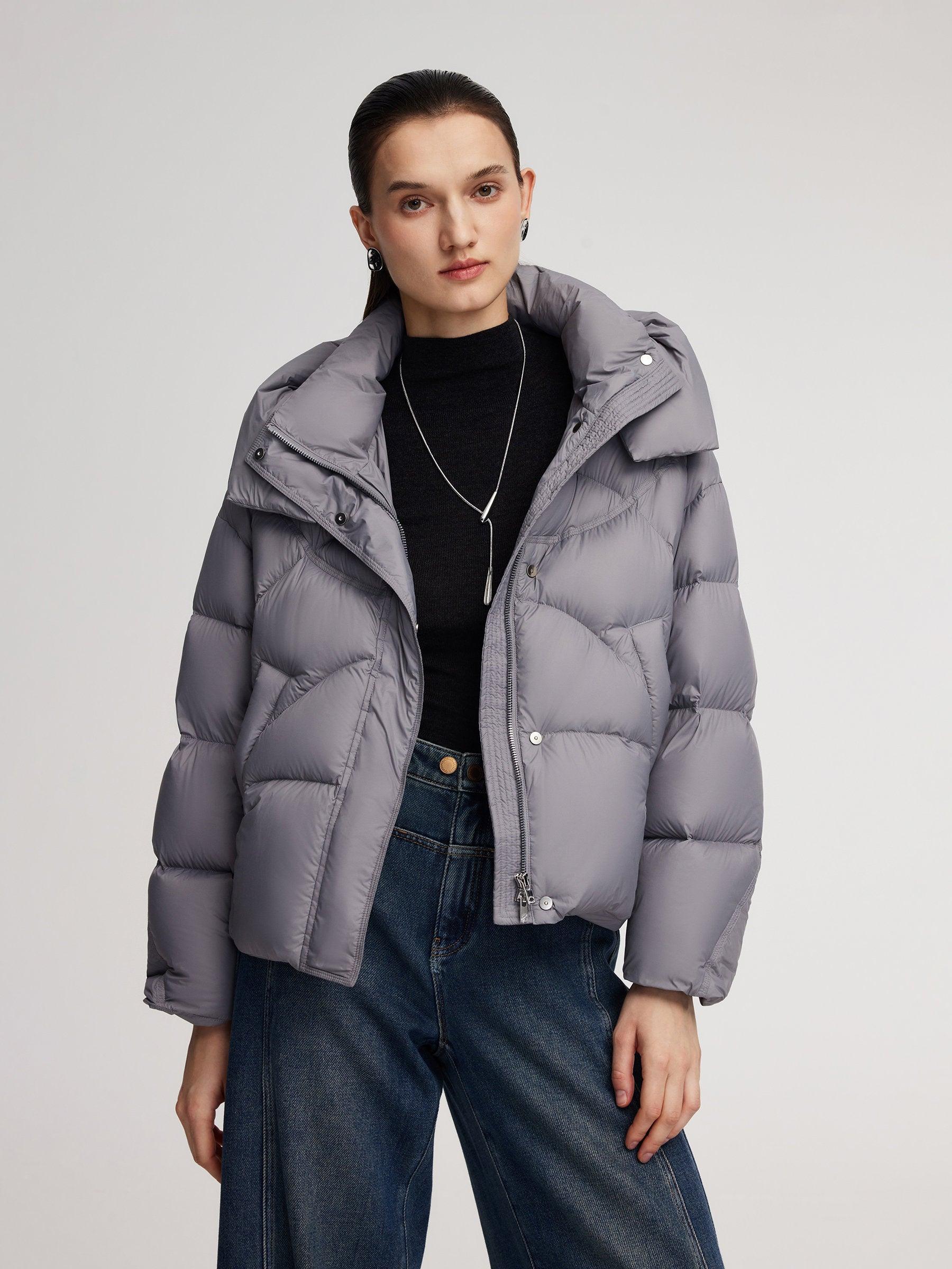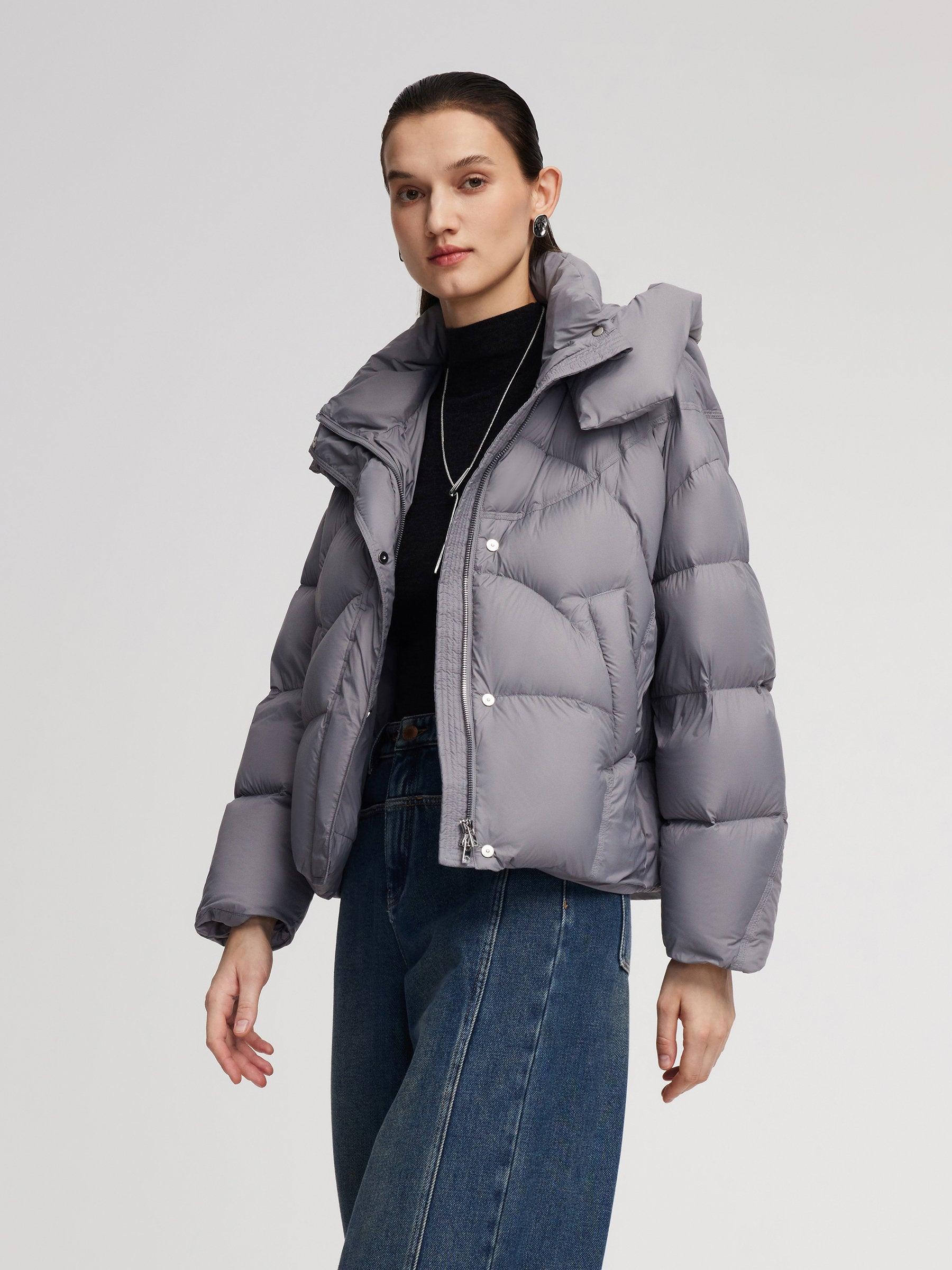 -95% down content and 90% down cluster content -With pockets -Warm and windproof Crafted with 95% premium Polish white goose down, this hooded jacket provides exceptional winter warmth. The hood features a magnetic closure for added wind protection, while the windproof cuffs and plush-lined pockets enhance comfort in c