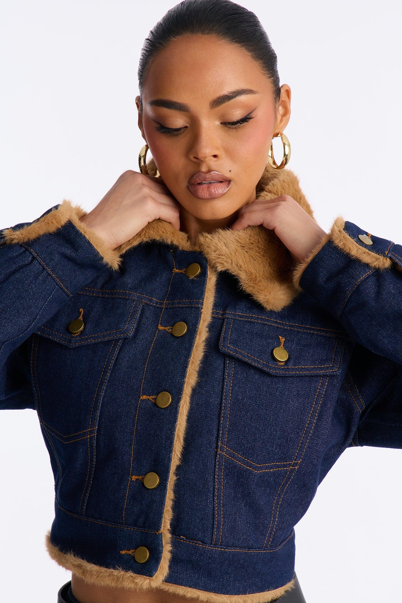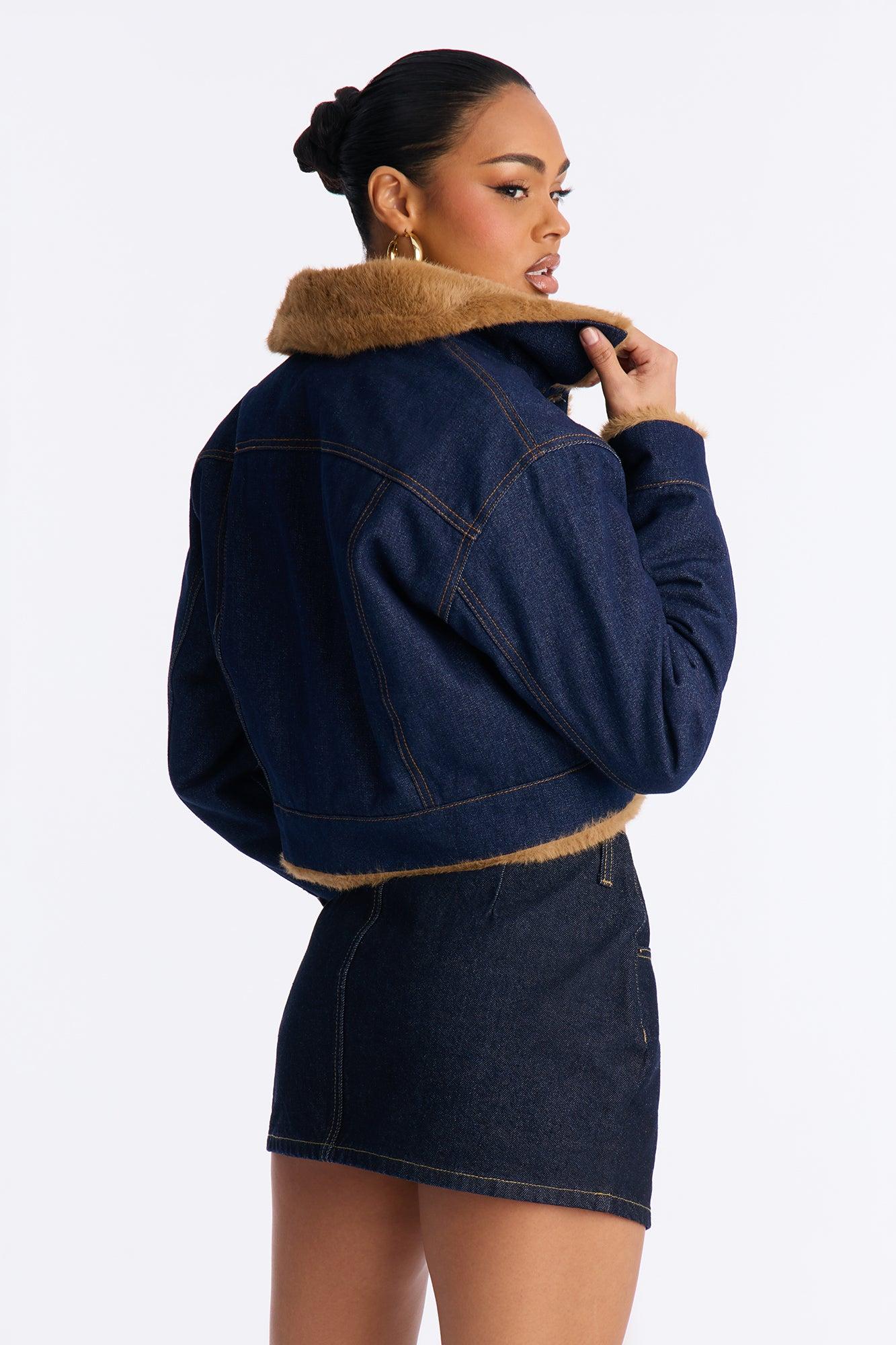 Like A Teddy Faux Fur Lined Denim Jacket - Dark Denim Female