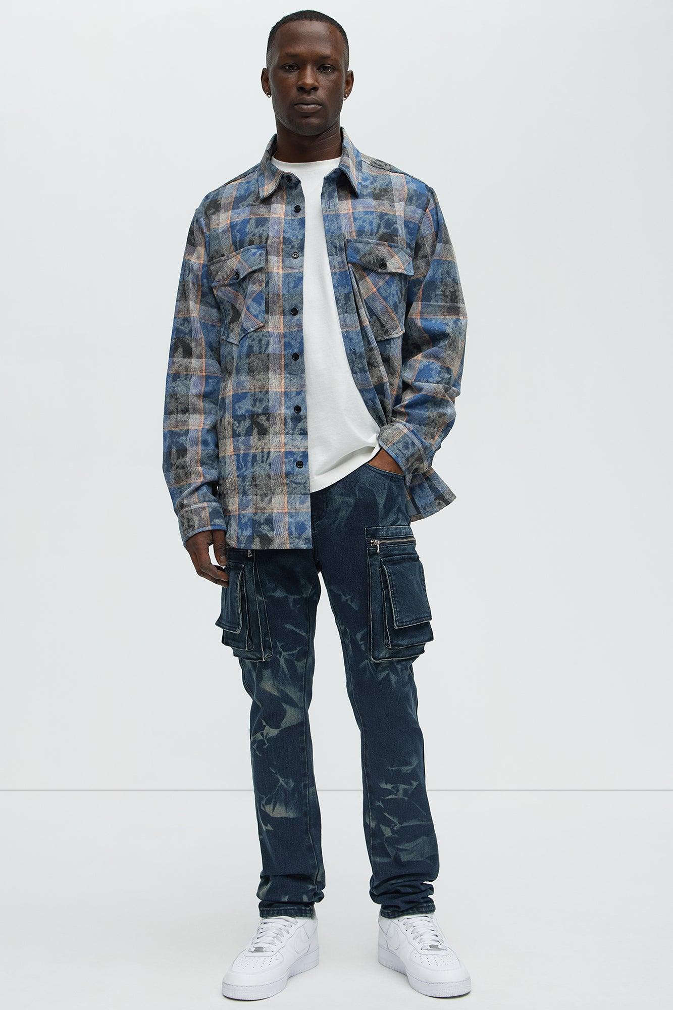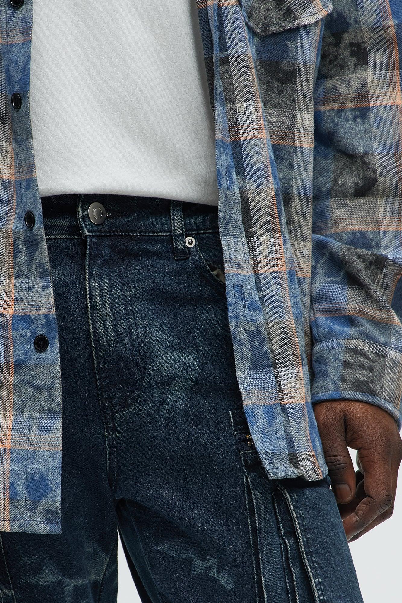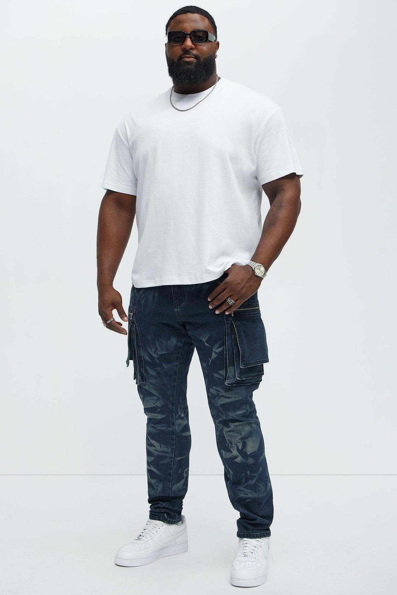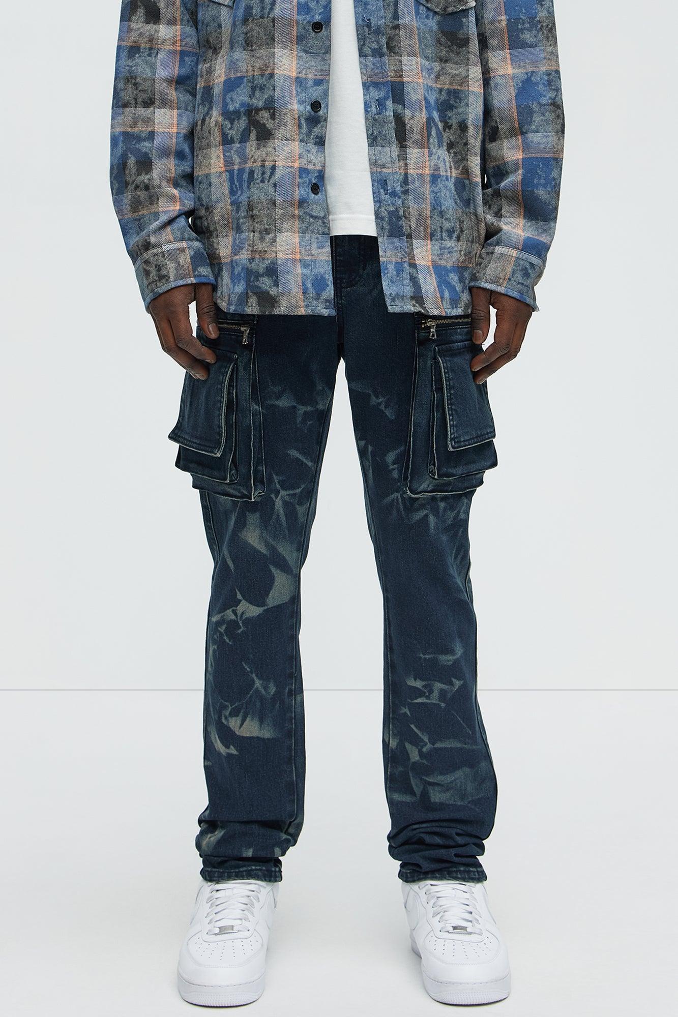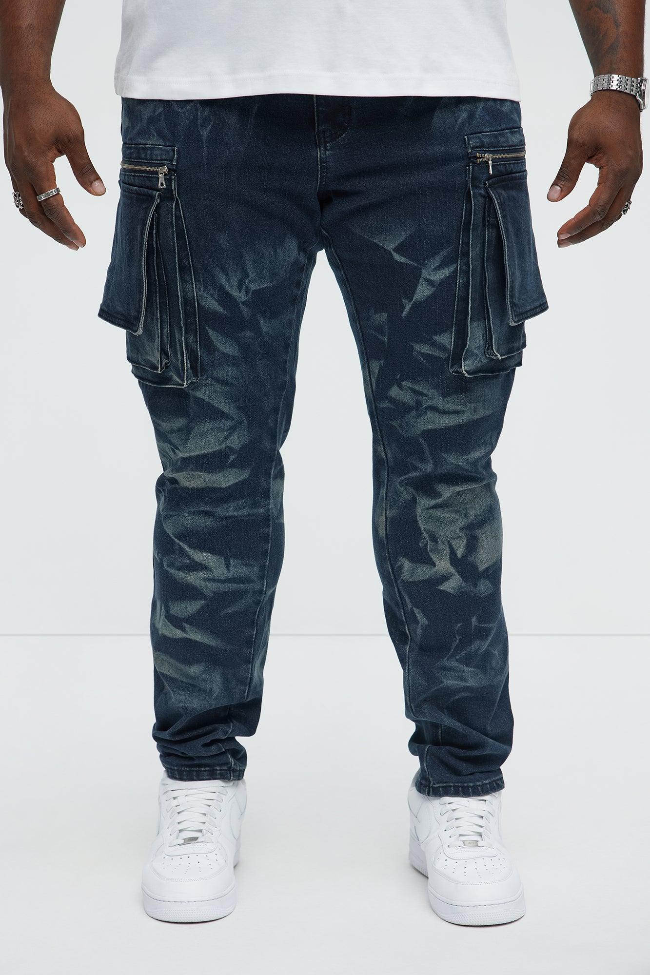 Available In Dark Wash. Stacked Skinny Fit Zip Fly Button Closure 5 Pocket Detail Cargo Pockets 68% Cotton, 30% Polyester, 2%Spandex Disclaimer: Due To The Specialized Wash Process, Each Garment Is Unique. Imported California Proposition 65WARNING: Cancer and Reproductive Harm - www.P65Warnings.ca.gov.