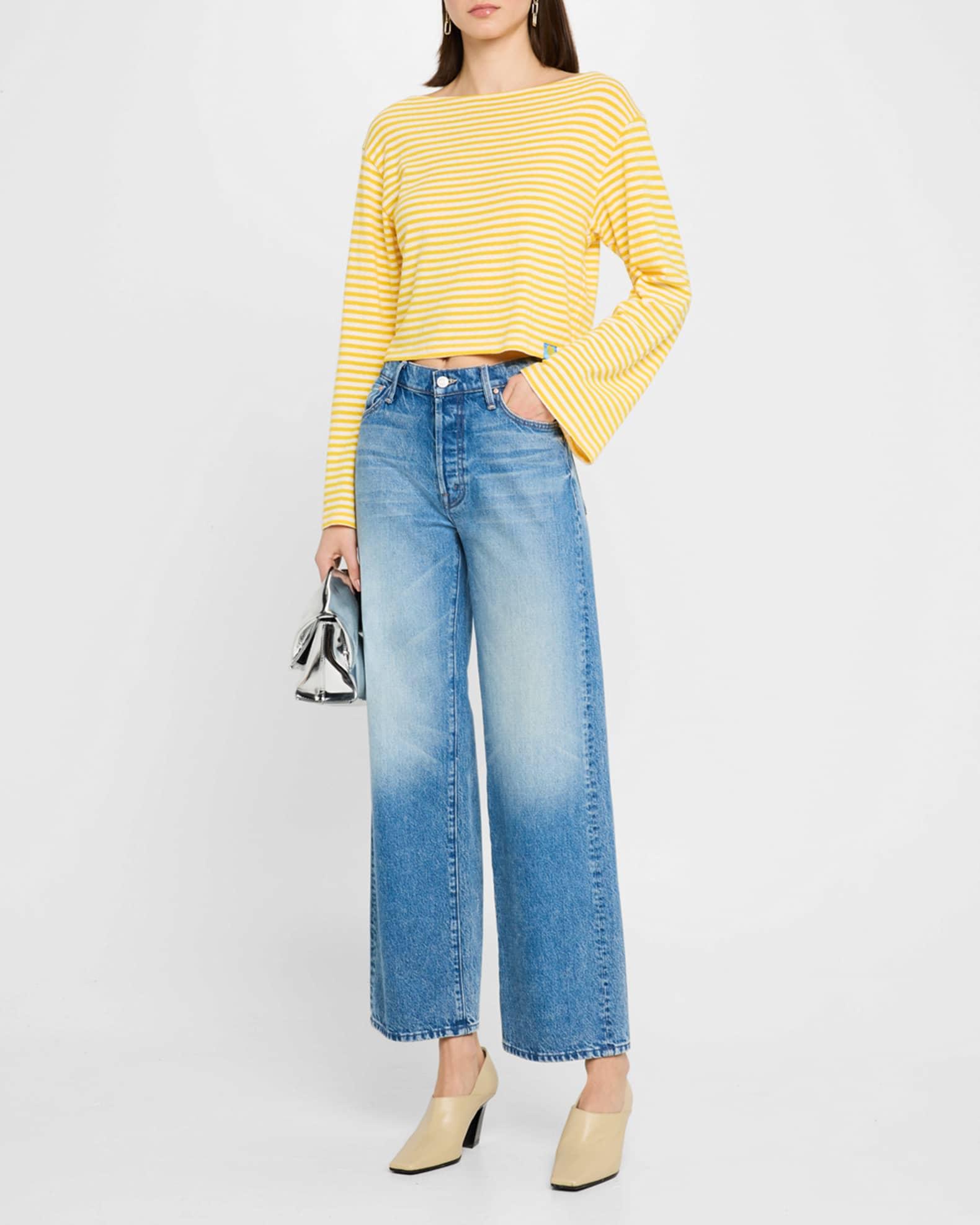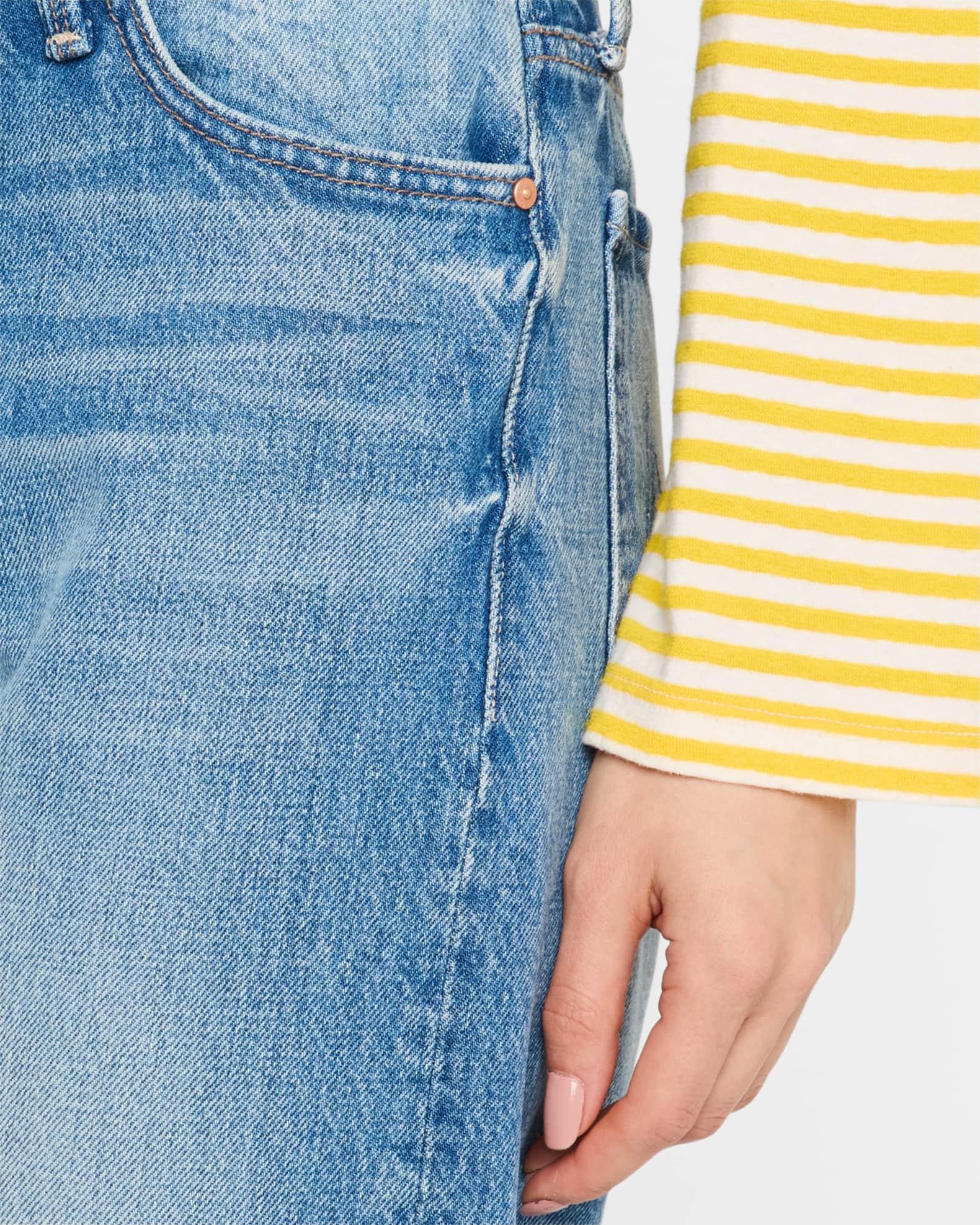 No big deal. Petites is here. MOTHER has adjusted the proportions of their denim styles to compliment petite body types 5’4” and under. All LIL’ MOTHER jeans have a higher knee placement and shorter inseams and rises, so they hit all the right places. MOTHER "The Lil' Dodger Sneak" jeans in semi-rigid denim with subtle whiskering and fading at the knee. Approx. 10.8" rise; 30" inseam High rise Five-pocket style Loose, straight legs Ankle length Button-fly; belt loops Cotton Made in USA