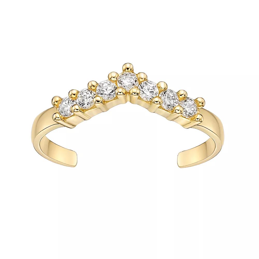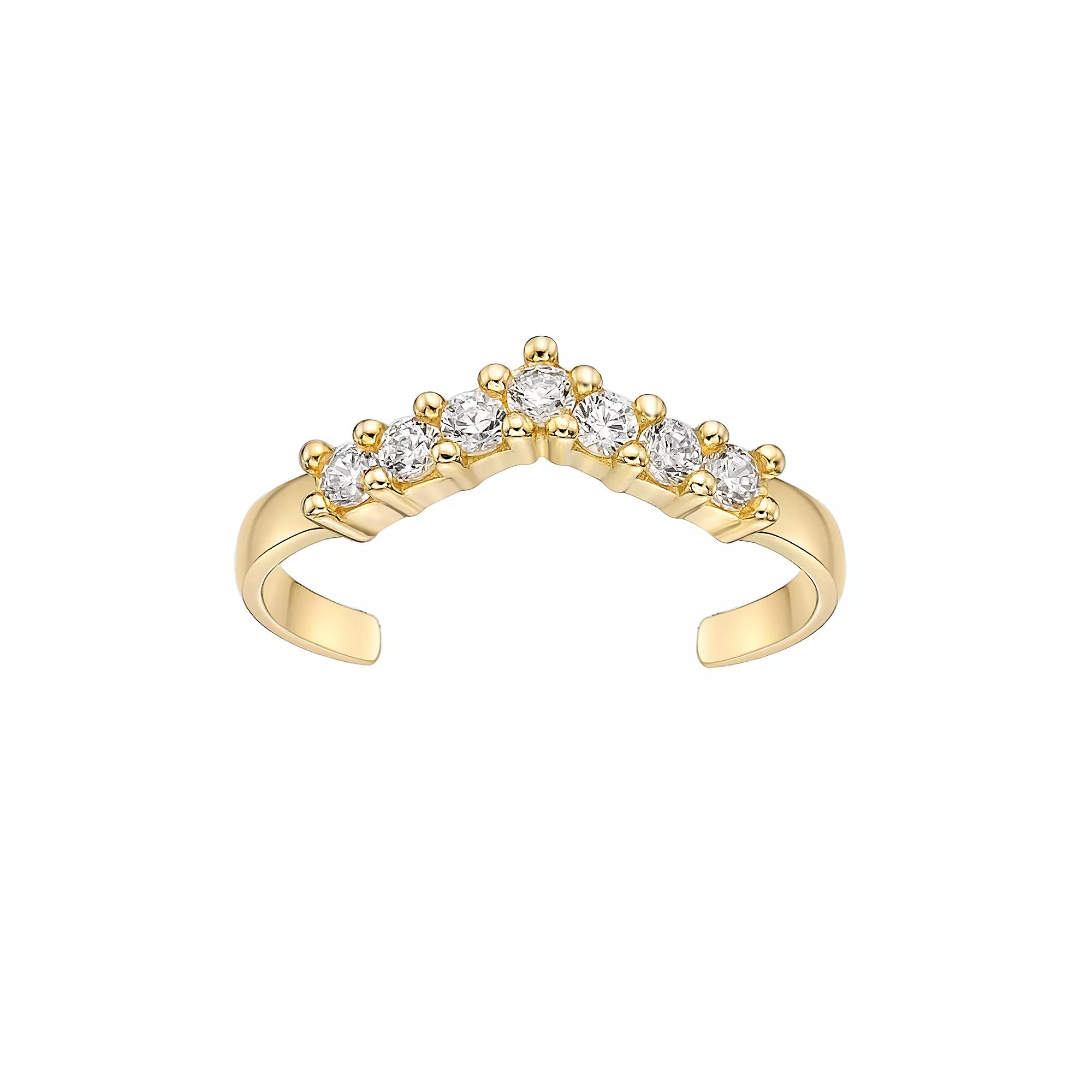 Add a touch of sparkle to your style with this Lila Moon cubic zirconia adjustable toe ring. Nickel free Metal: 10k gold Packaging: pouch Width: 4 mm Finish: polishedSTONE DETAILS Stone type: cubic zirconia Total weight: 1 ct. Center stone size: 2 mm x 2 mm Shape: round Setting: prong Gemstones may have been treated to enhance their appearance. Special care may be required. Please visit our Gemstone Treatment & Special Care Guide for more information. Please note, due to the high value of this item, a signature may be required upon delivery. Color: Yellow. Gender: female. Age Group: adult.