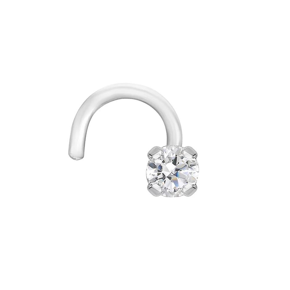 Add a touch of sparkle to your look with this 14k gold diamond accent curved nose stud. 20 gauge Nickel free Metal: 14k gold Plating: rhodium Packaging: boxed Finish: polished Length: 6 mmDIAMOND DETAILS Total weight: less than 1/10 ct. Stone size 2.4 mm Shape: round Setting: prong Please note, due to the high value of this item, a signature may be required upon delivery. Color: White. Gender: female. Age Group: adult.