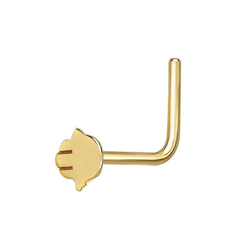 Finish off your look with this 14k gold Lila Moon 90-degree Hamsa nose stud. Finish off your look with this 14k gold Lila Moon 90-degree Hamsa nose stud. Length: 4.5 mm Nickel free Metal: 14k gold Finish: polished Packaging: pouch Please note, due to the high value of this item, a signature may be required upon delivery. Size: One Size. Color: Yellow. Gender: female. Age Group: adult.