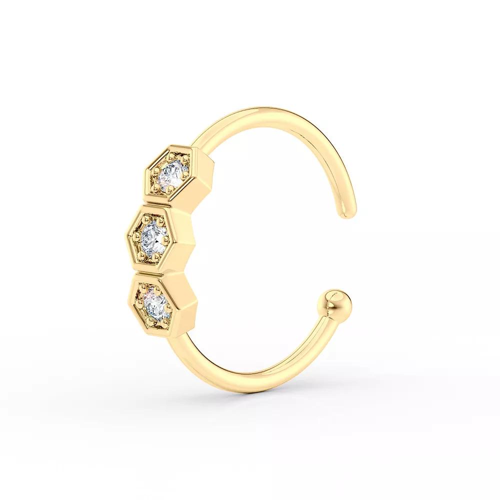 This Lila Moon 14k Gold Lab-Grown Diamond Accent 3-Stone Hexagon Hoop Nose Ring adds personal style to your ensemble. Click on this JEWELRY & WATCHES GUIDE to learn about fit, styles, materials and more! This Lila Moon 14k Gold Lab-Grown Diamond Accent 3-Stone Hexagon Hoop Nose Ring adds personal style to your ensemble. Click on this JEWELRY & WATCHES GUIDE to learn about fit, styles, materials and more! FEATURES 20 gauge Dimensions: 10.2 mm x 2.6 mm Metal: 14k white gold, 14k gold Finish: polished Packaging: pouch Nickel safe ImportedDIAMOND DETAILS Total weight: less than 1/10 ct. Center stone weight: less than 1/10 ct. Color grade: D-F Clarity: VS Shape: round Setting: prong Diamond weights are approximate. Diamond Total Weights may vary between .01 and .13 ct. Some diamonds consist of fewer than 17 facets. Gemstones may have been treated to enhance their appearance. Special care may be required. Please visit our Gemstone Treatment & Special Care Guide for more information. Image(s) may be enlarged to show detail. Size: One Size. Gender: female. Age Group: adult.