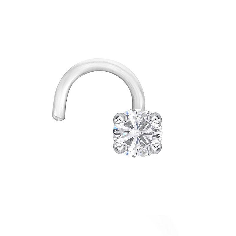 Add a touch of sparkle to your ensemble with this Lila Moon diamond accent curve nose stud. Click on this JEWELRY & WATCHES GUIDE to learn about fit, styles, materials and more! Add a touch of sparkle to your ensemble with this Lila Moon diamond accent curve nose stud. Click on this JEWELRY & WATCHES GUIDE to learn about fit, styles, materials and more! FEATURES Length: 7 mm Metal: 14k white gold, 14k gold Plating: rhodium Finish: polished Packaging: boxed Nickel freeDIAMOND DETAILS Total weight: less than 1/10 ct. Color grade: H-I Clarity: I2-I3 Shape: round Setting: prong Diamond weights are approximate. Diamond Total Weights may vary between .01 and .13 ct. Some diamonds consist of fewer than 17 facets. Image(s) may be enlarged to show detail. Size: One Size. Gender: female. Age Group: adult.