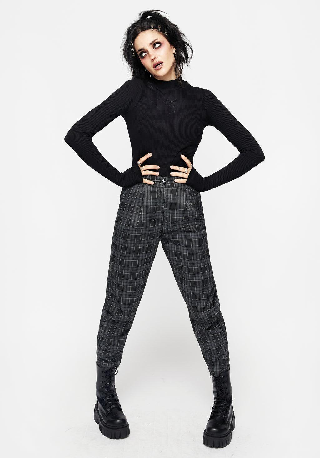 Welcome, daughter of Lilith- Black & grey check tapered trousers - Midrise waistband with relaxed ankle-length tapered legs - Shaping knife pleats on waistband are tummy & bloating friendly - Self-fabric waistband and belt loops to accessorise - Button & zipper fly for easy, secure fastening - Soft, slight stretch fabric in a grey check pattern - Snappy (but comfortable) styling abound - Fear nothing 97% polyester 3% elastane