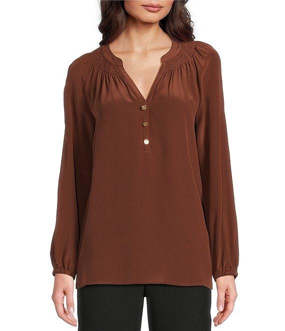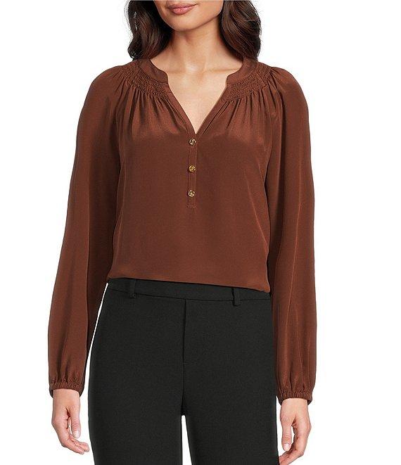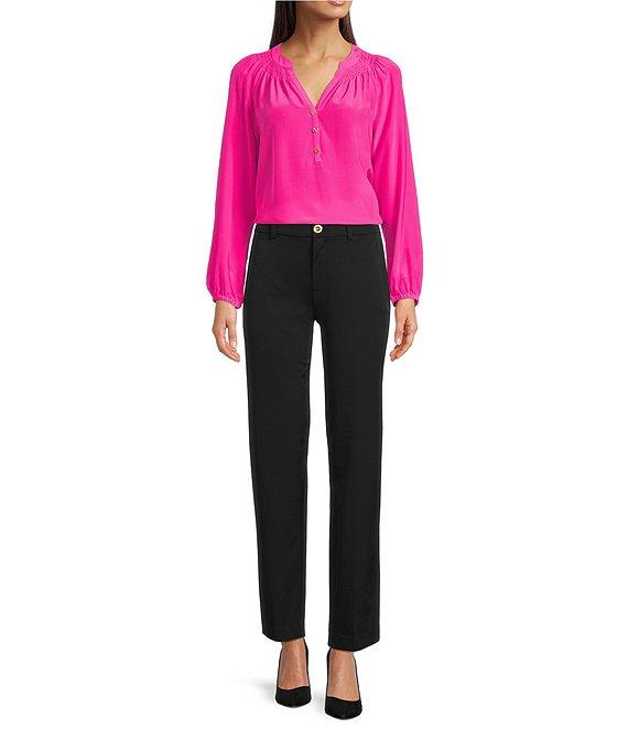 Lilly Pulitzer Elsa Silk Notch Neck Long Sleeve Blouse