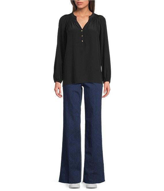 Lilly Pulitzer Elsa Silk Notch Neck Long Sleeve Half Button Top