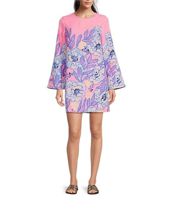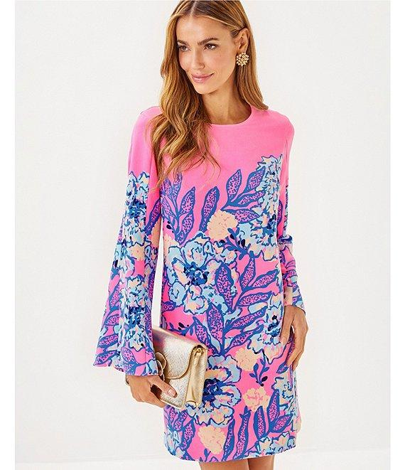 Lilly Pulitzer Gwenlyn Satin Back Crepe Crew Neck Bracelet Sleeve Shift Dress