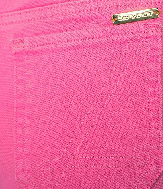 From Lilly Pulitzer, these jeans feature: Denim fabrication High-rise Straight fit Front patch and back pockets Belt loops Front fly button closure Approx. 27" length Cotton/elastane Machine wash Imported.