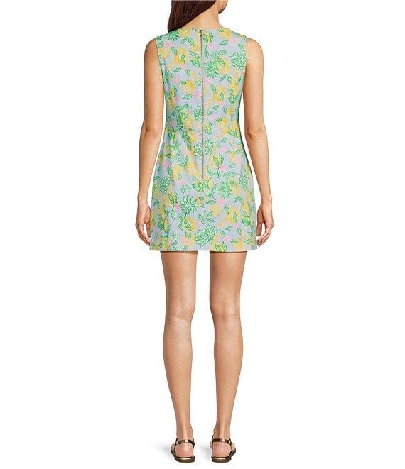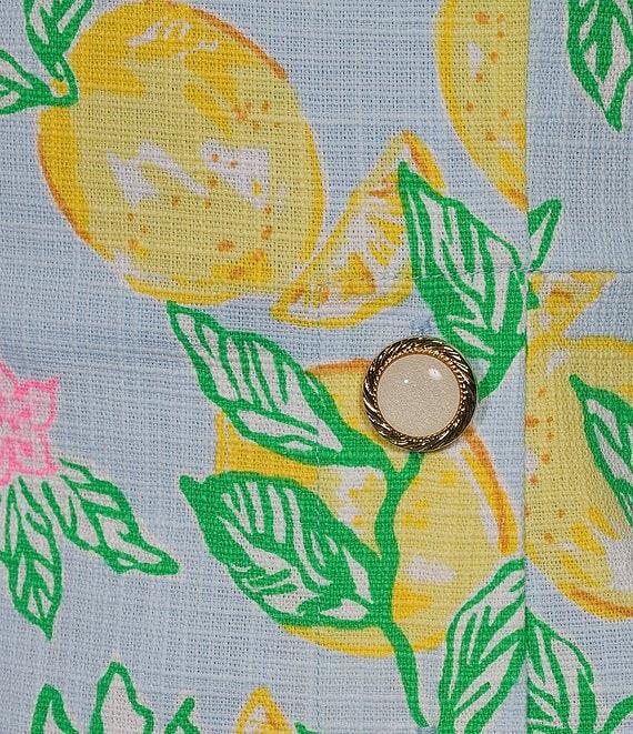 From Lily Pulitzer, this romper features: Stretch hopsak fabrication Make lemonade print Square neckline Sleeveless Wrap skirt detail with pearl buttons Built in shorts Straight hem Pull-on construction Approx. 17" from waist; 2.5" inseam Cotton/spandex Machine wash Imported.