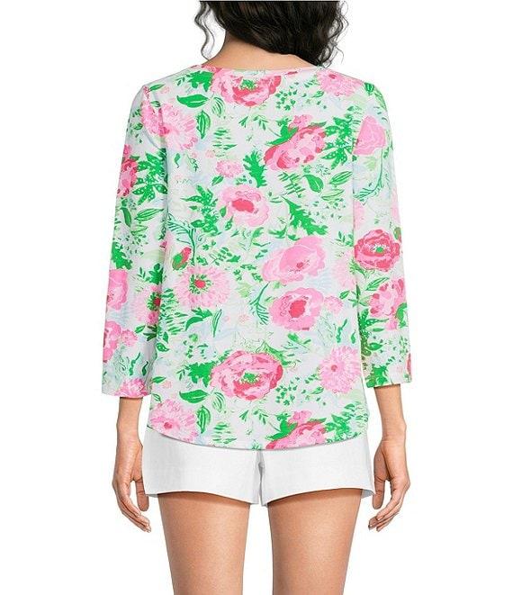 From Lilly Pulitzer, this top features: Soft blended jersey fabrication Poppy party print Crew neckline 3/4 sleeves Straight hem Pullover construction Approx. 26.5" length Pima cotton/modal/spandex Machine wash Imported.