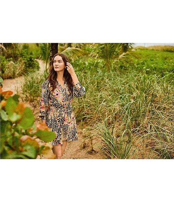 From Lilly Pulitzer, this dress features: Stretch poplin fabrication El Morocco print V-neckline Long sleeves Straight hem Tie waist detail Double welt pockets with button tab Back zip closure Approx. 20" length Cotton/spandex Machine wash Imported.