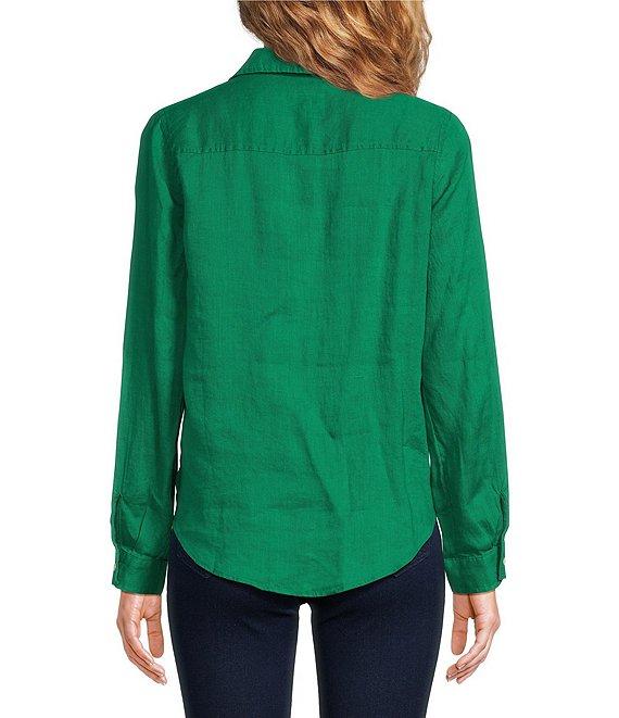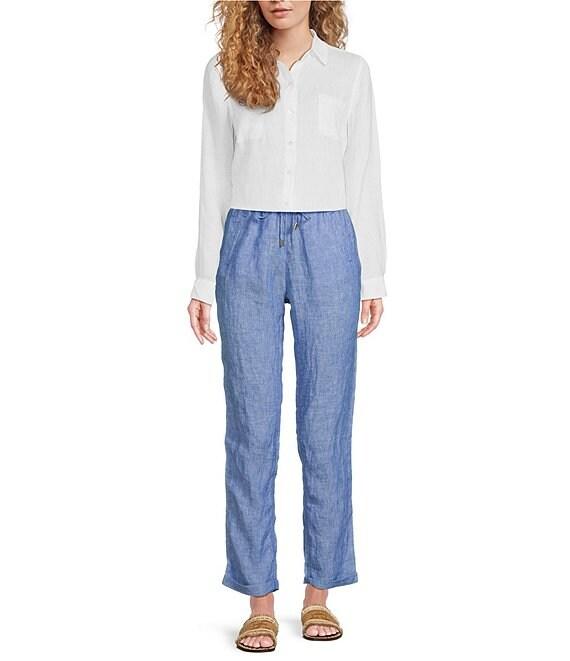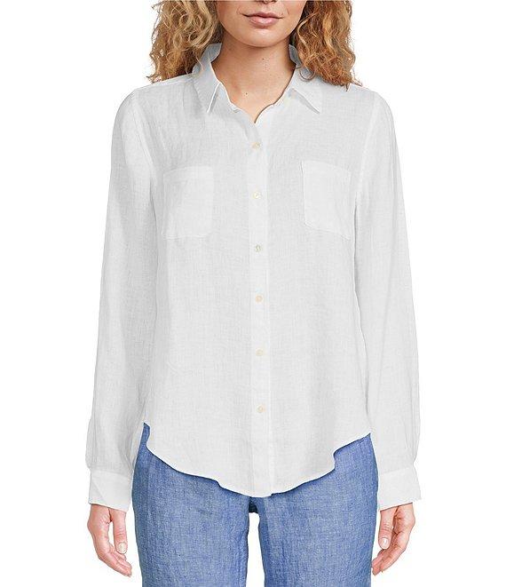 Lilly Pulitzer Sea View Woven Linen Point Collar Long Sleeve Button Down Shirt