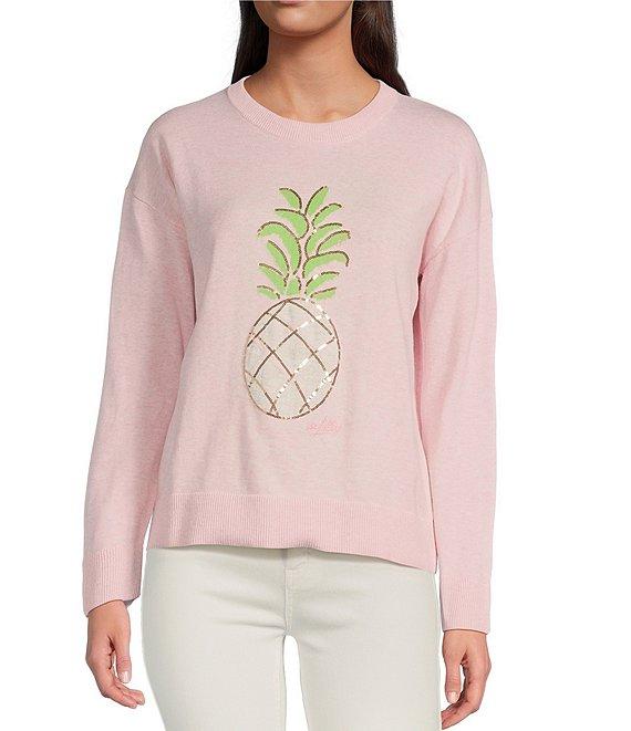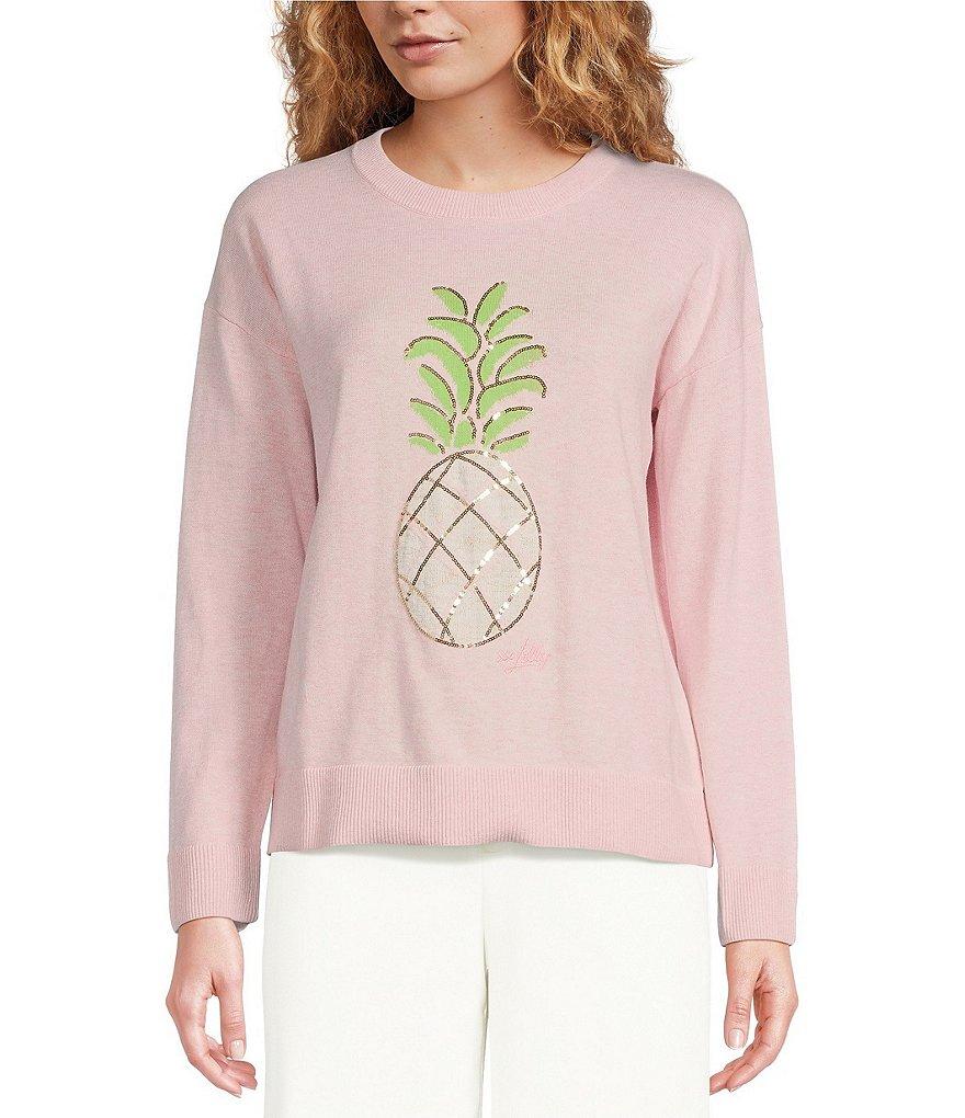 Lilly Pulitzer Tensley Pineapple Jacquard Crew Neck Long Sleeve Sweater