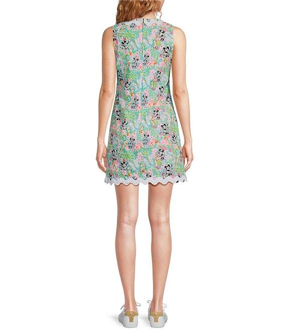 From Lily Pulitzer x Disney, this romper features: Poplin fabrication Lily hearts Disney print Split v-neckline Sleeveless Front patch pockets Ric rac trim Bult in shorts Back zip closure Approx. 34" length; 3" inseam Cotton Machine wash Imported.
