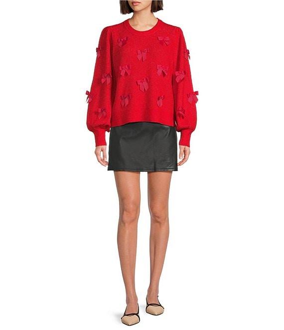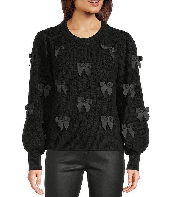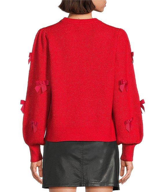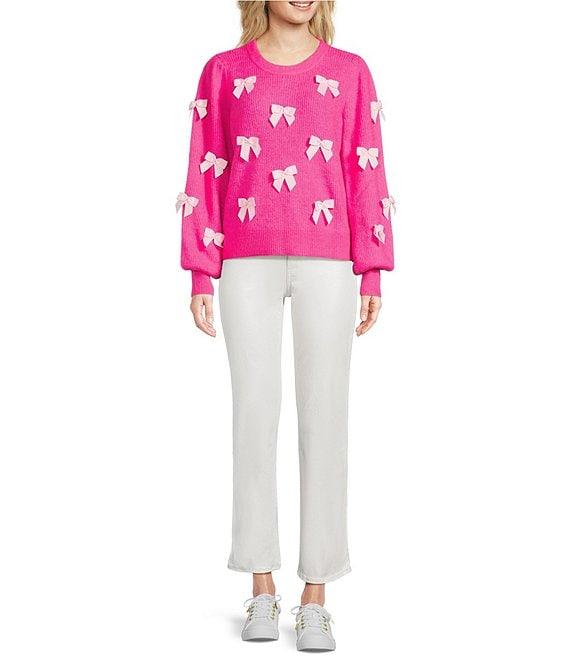 Lilly Pulitzer Zarie Fluffy Blend Knit Bow Applique Crew Neck Puff Long Sleeve Sweater