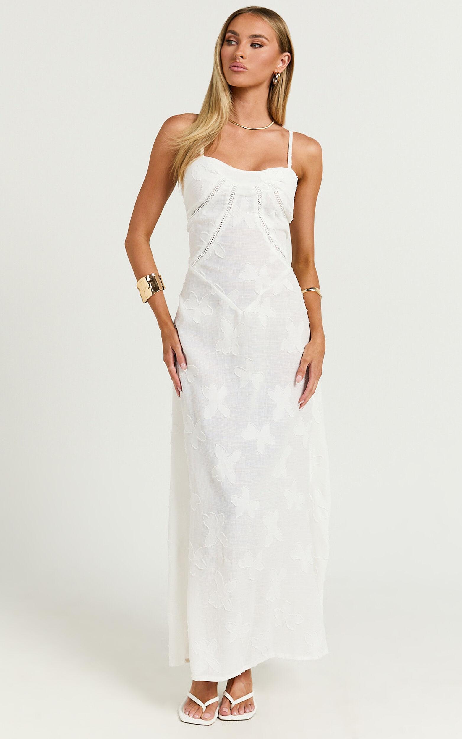 Embrace the allure of elegance with our Lily Maxi Dress - a sheer Jacquard Maxi Dress in Cream that's bound to turn heads and steal hearts. With its dreamy cream hue and captivating clipped Jacquard design, this dress is more than just a piece of clothing; it's a ticket to becoming the enchantress of the evening.Product Details:Fit & Flare DressClipped Jacquard FabricSweetheart NecklineParty PerfectMaxi LengthSleeveless
