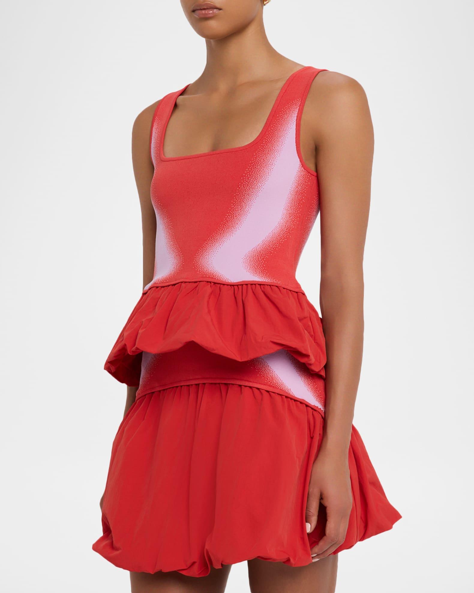 PH5 "Lily" mixed-media tank top consists of a stretch knit bodice punctuated by a voluminous peplum hem Square neckline Sleeveless Slim fit Hip length Pullover style Viscose/polyester/nylon/polyamide Imported