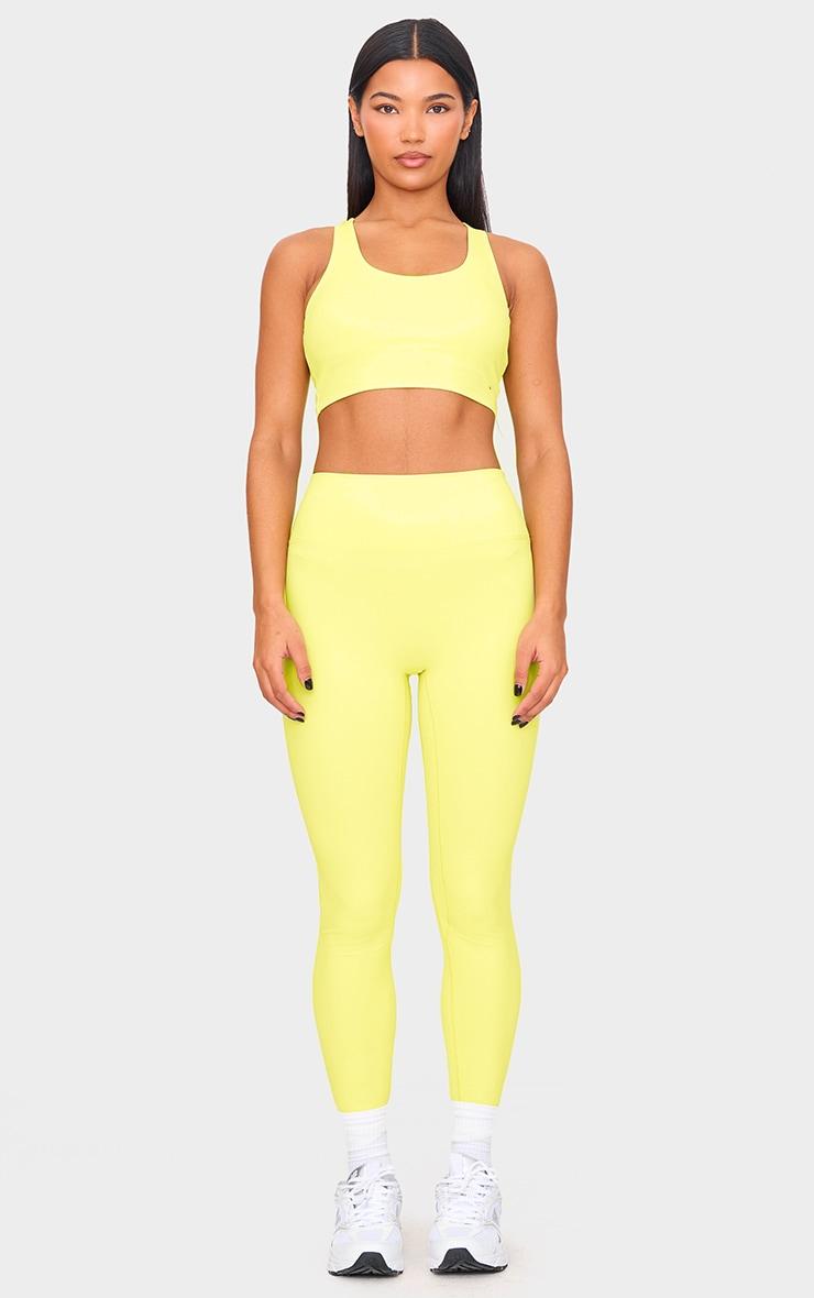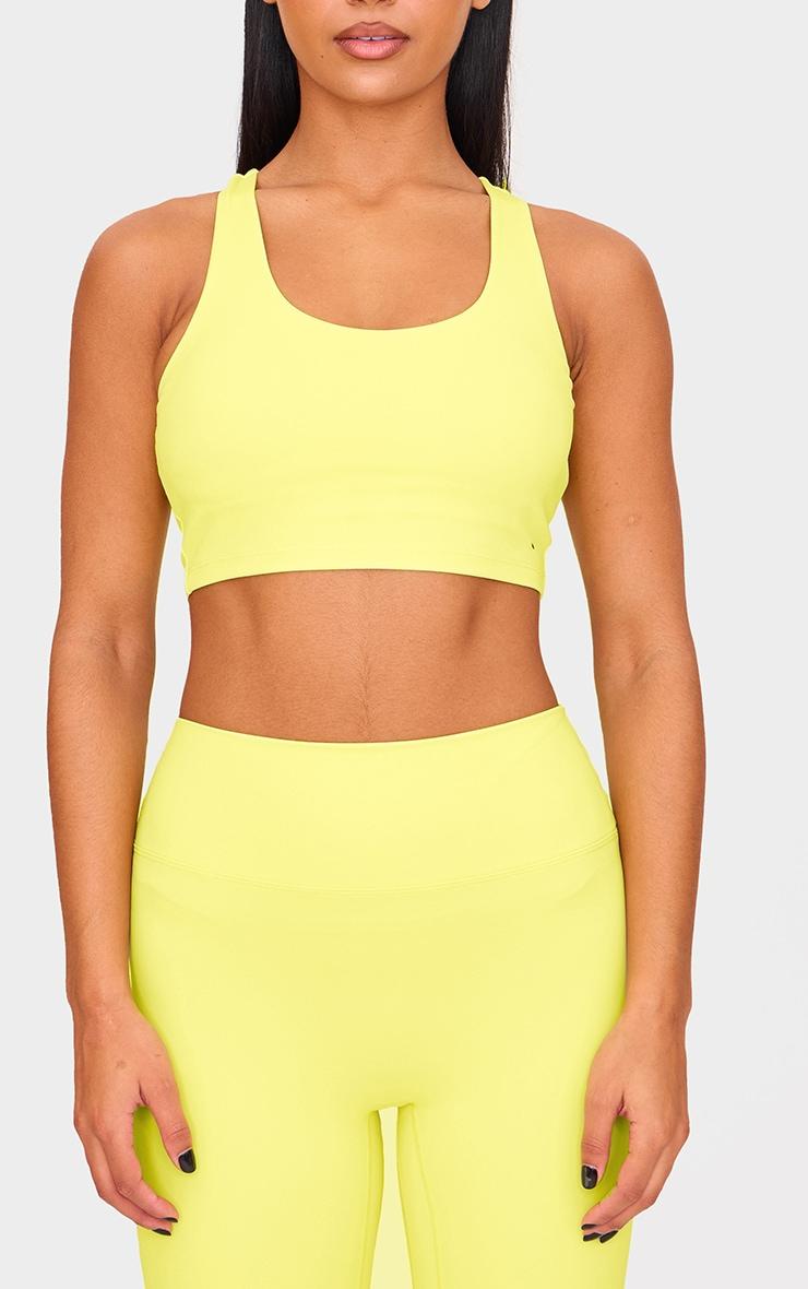 You won't blend into the crowd with this lime sculpt double layer padded sports bra. Brought to you in a statement lime hue, with a luxe sculpt double layer material and flattering padded design, this sports bra deserves to be a part of your collection. Team with the matching leggings and pair of sneakers for a look like no other. Length approx 33cm/13inch (Based on a sample size S) Model wears size SModel Height - 5ft 6inchp]:!mb-0inch>Category: ActivewearProduct type: Sports BraColor: LimeMaterial: Sculpt ActiveDesign: PlainNeckline: ScoopSleeves: SleevelessOccasion: Day