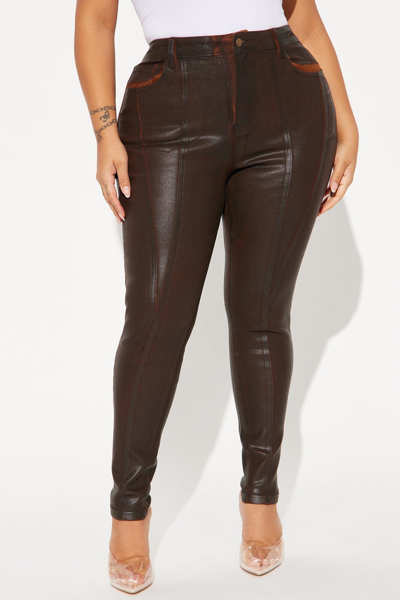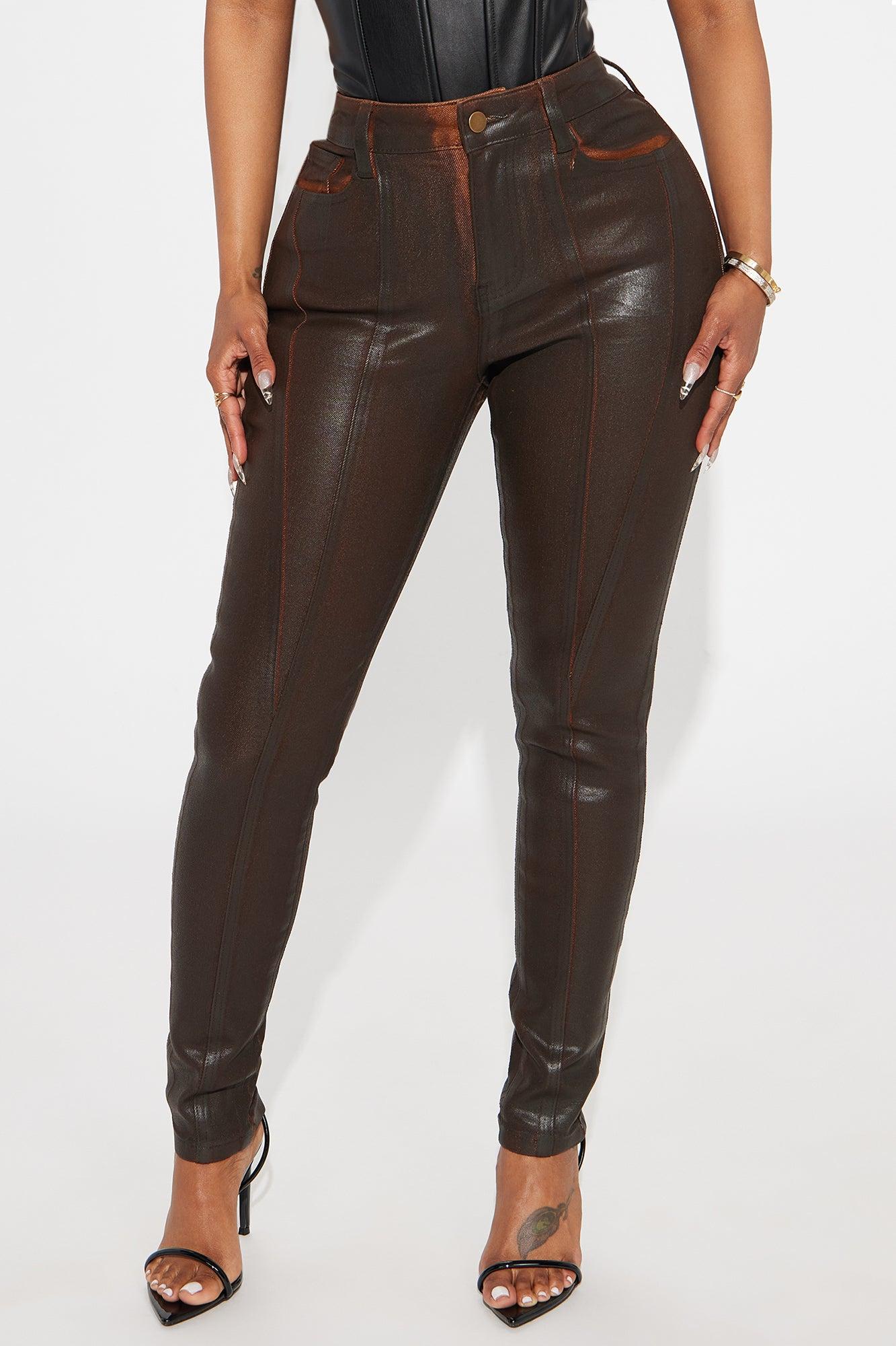 Available In Dark Brown And Red. Skinny Pant High Rise Button & Zip Closure Hand & Back Pockets Coated Stretch 29" Inseam Disclaimer: Due To The Specialized Wash And Coating Process, Each Garment Is Unique. 65% Cotton 33% Polyester 2% Spandex Imported California Proposition 65WARNING: Cancer and Reproductive Harm - www.P65Warnings.ca.gov.