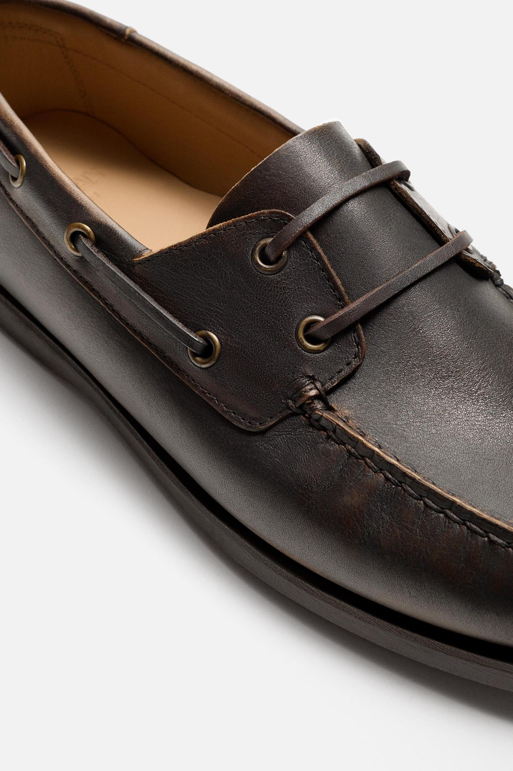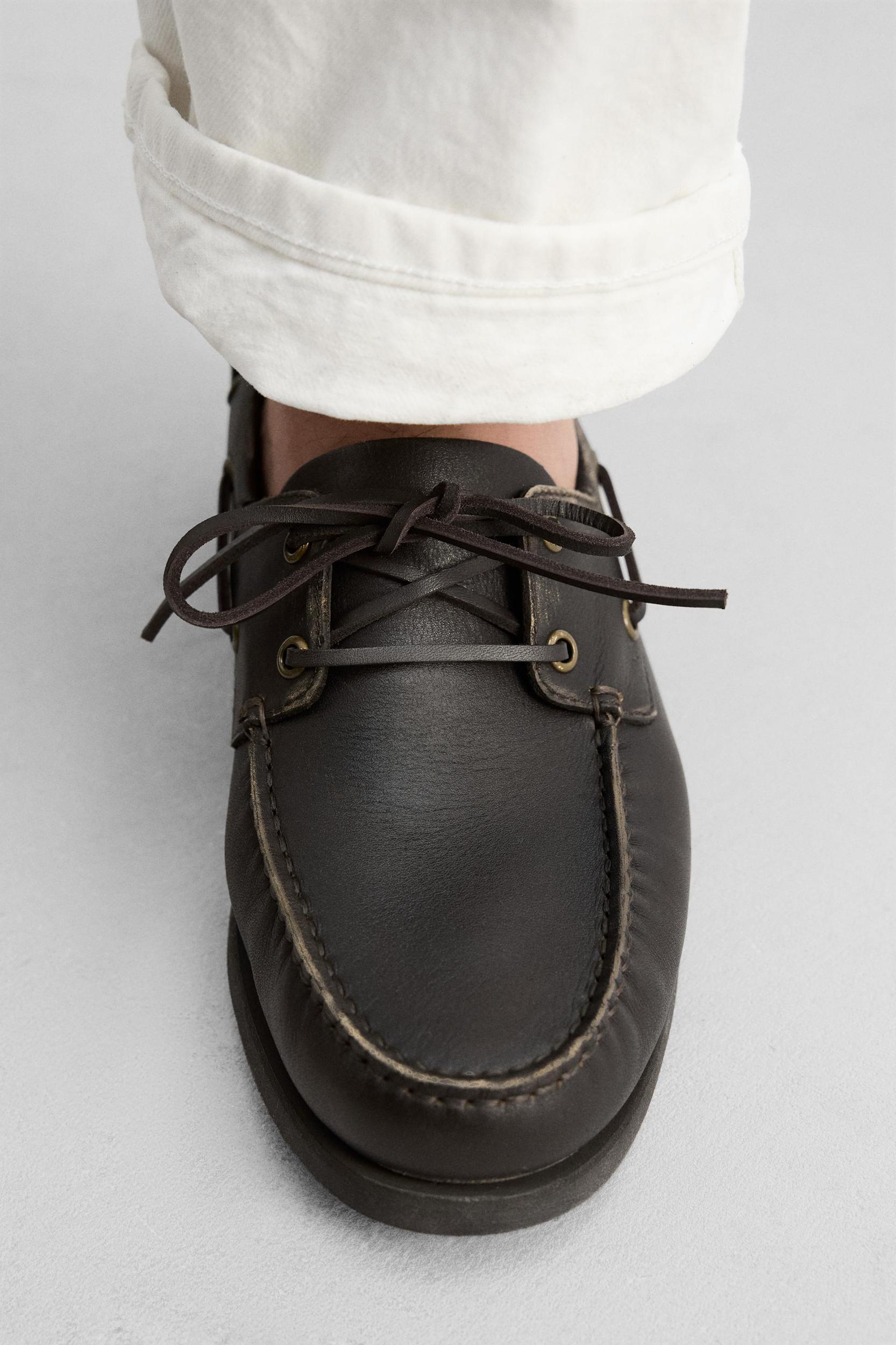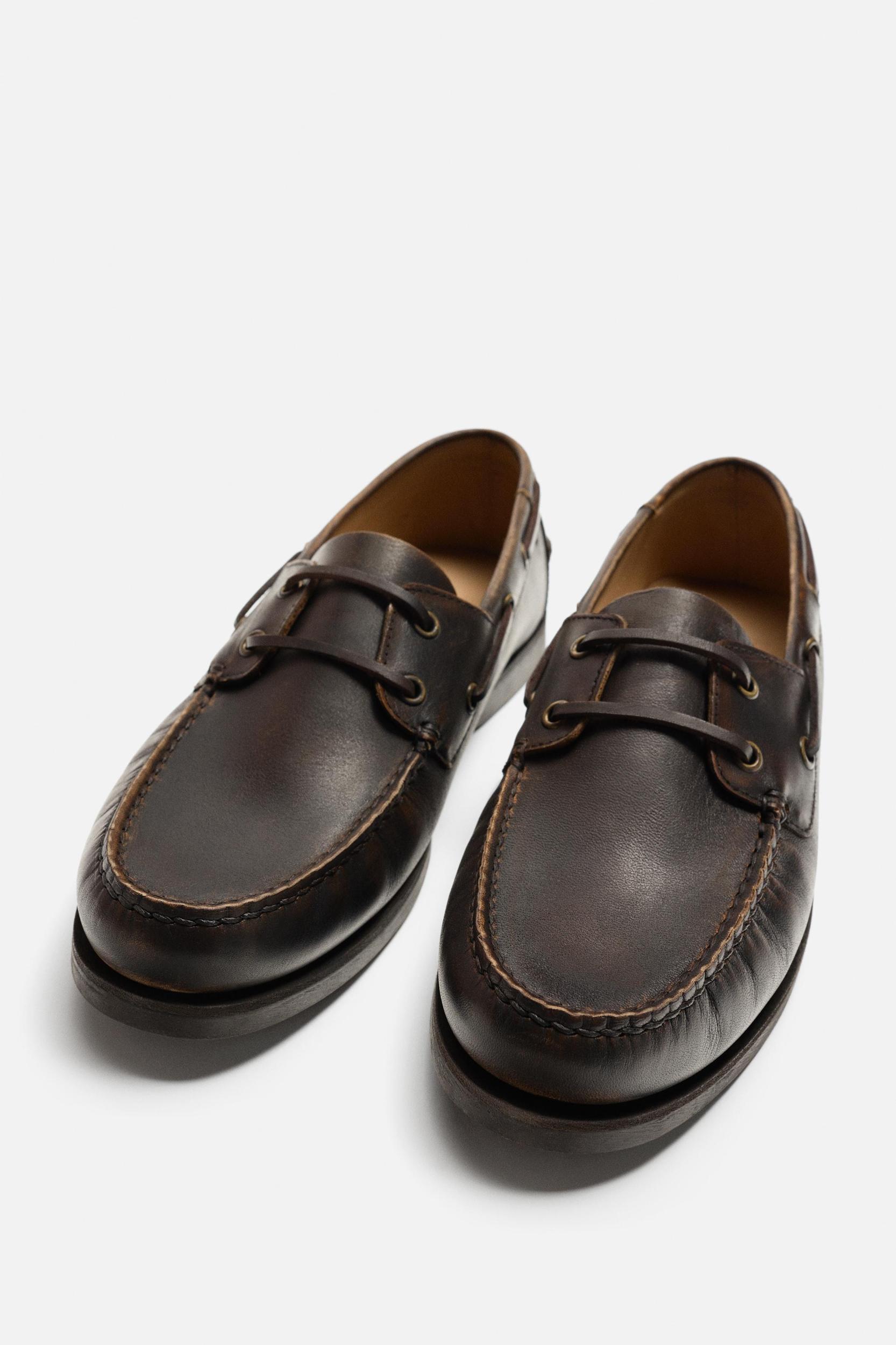 Boat shoes. High-quality leather upper with a worn effect. Leather lining and insole. Rounded toe. Matching sole.