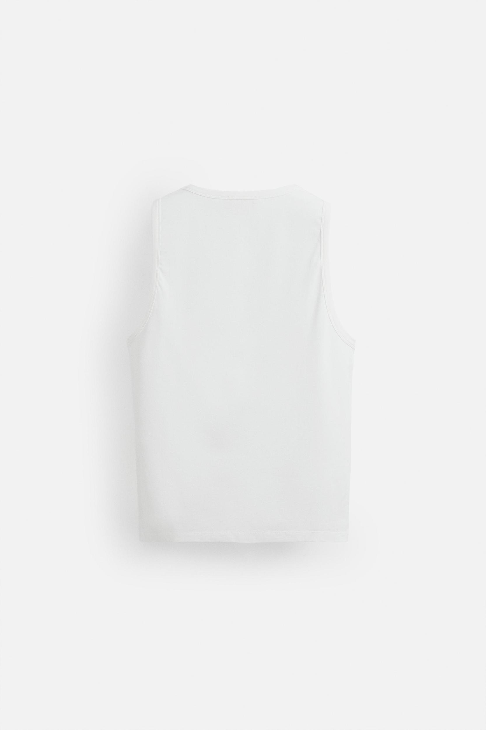 Regular fit tank top. Wide round neck and sleeveless. A limited edition of key pieces that redefine the current wardrobe. Designed to sculpt a classic silhouette that reinterprets archival classics from the 90s.
