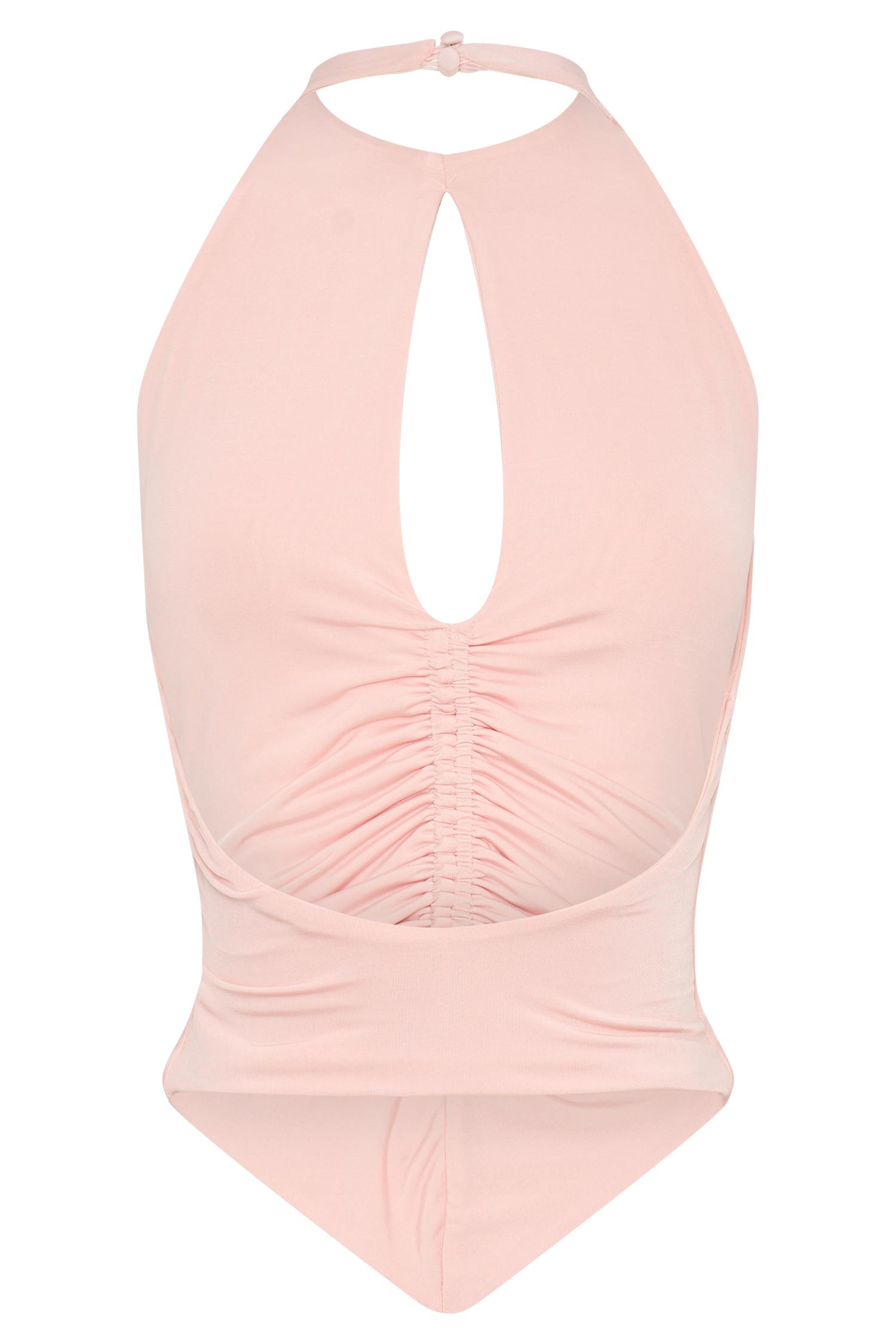 Dare to bare. Turn heads with the LINDA Slinky Ruched Halter Top, a bold and sultry addition to your wardrobe. Featuring a chic halter neckline and a centre-front keyhole, this top adds just the right amount of allure. The pointed front hem creates a sleek, flattering silhouette, while the open-back design adds a daring, modern edge. Crafted from slinky, figure-hugging fabric and fully lined for comfort, this top is perfect for pairing with high-waisted jeans or skirts for a look that’s effortlessly sophisticated and ready for any night out.