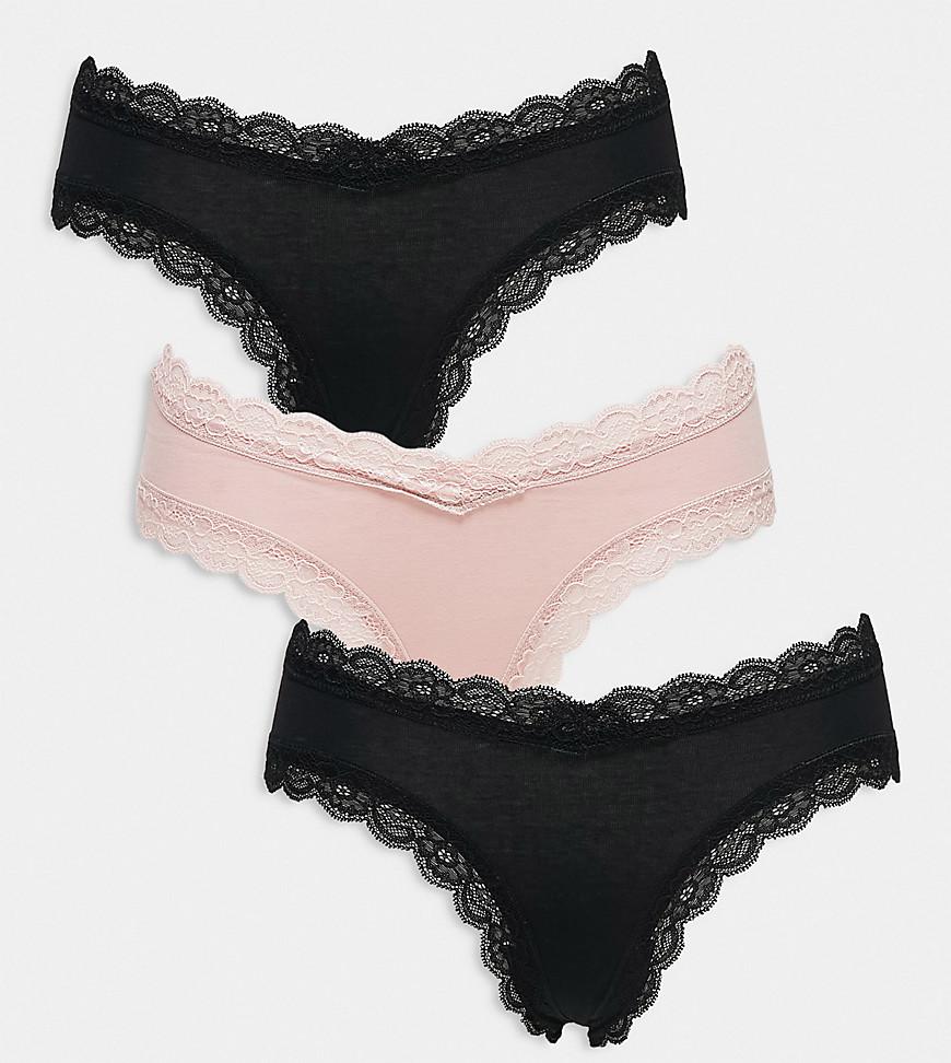 Maternity by Lindex Cute and comfy Pack of three Mid rise Elastic waist Lace trim High-cut leg Designed to fit you from bump to baby