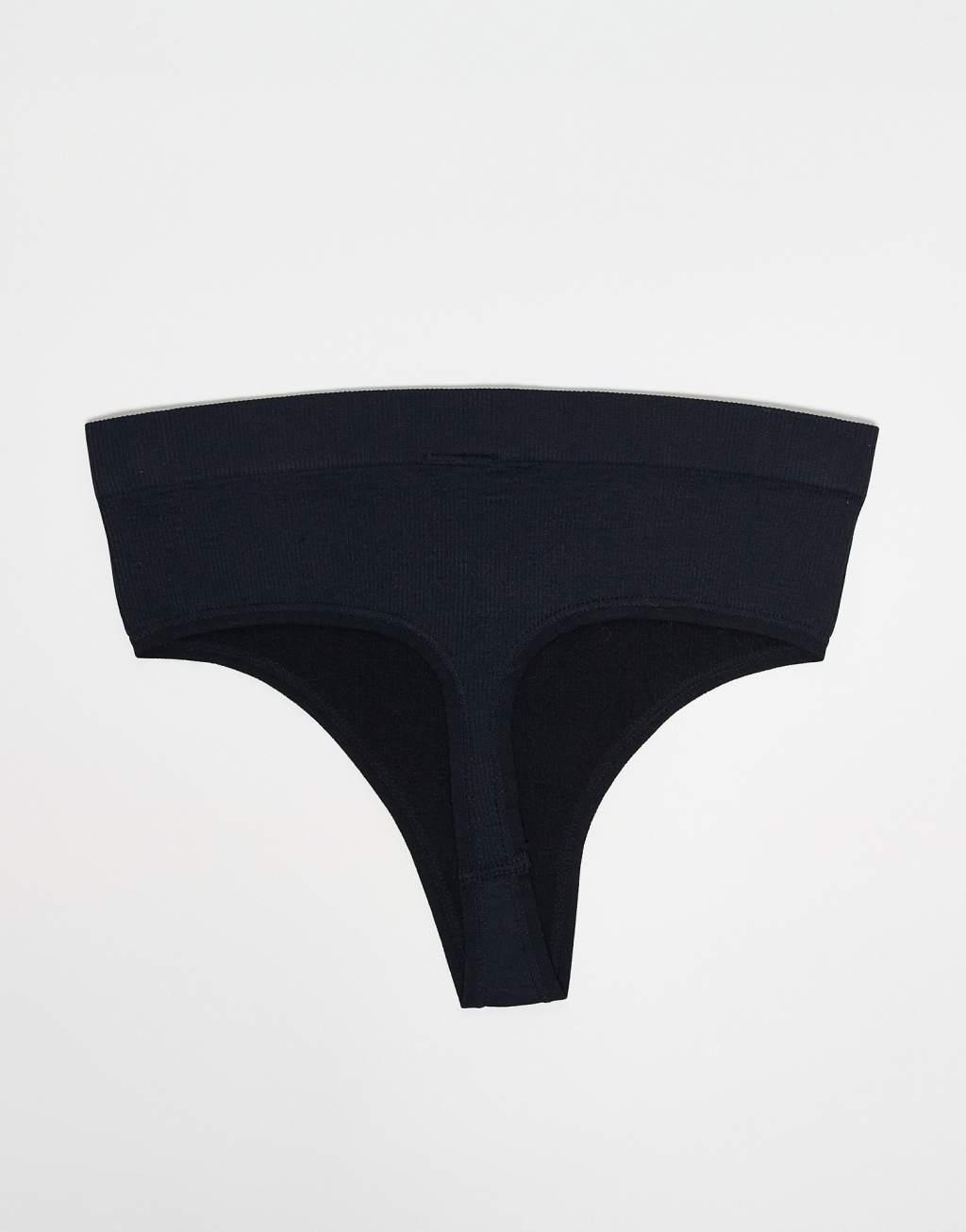 Lindex seamless rib high waist thong 3 pack in black
