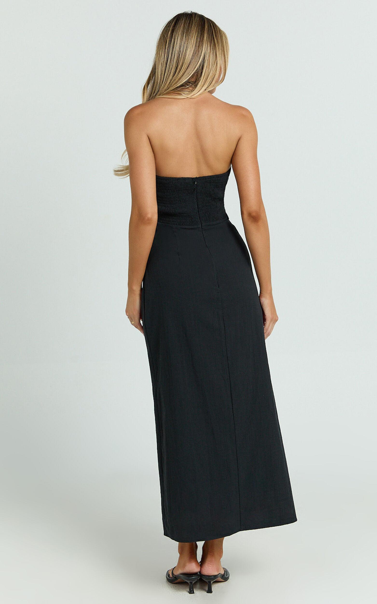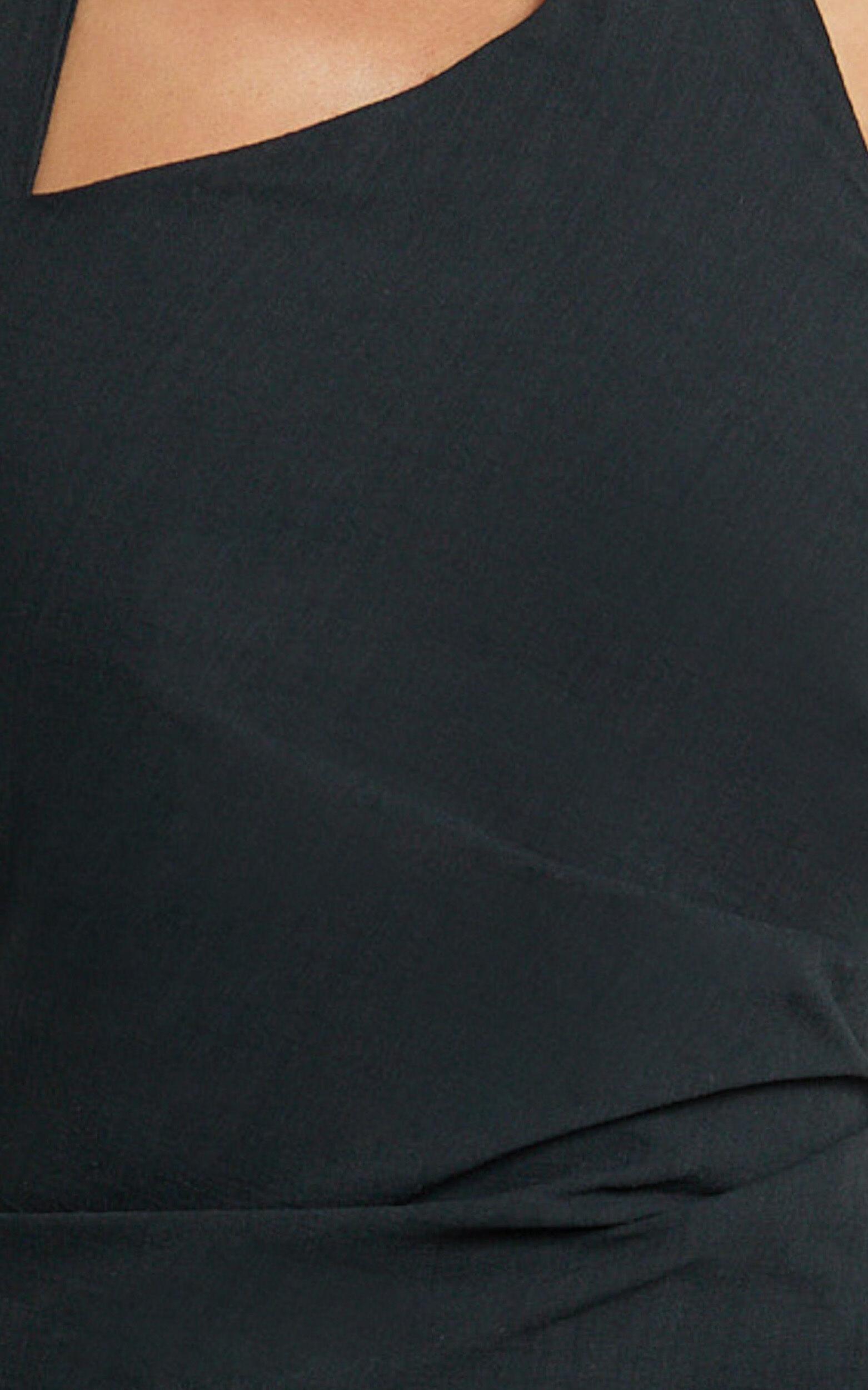 Lindley Midi Dress - Halter Neck Linen Look Dress in Black