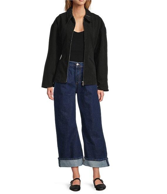 From Line and Dot, this jacket features: Heavy-weight brushed twill fabrication Collared neckline Long sleeves Zipper front closure Peplum silhouette Two front pockets Button cuff detail Self: cotton Vegan leather contrast collar: polyester Lining: polyester Dry clean only Imported.