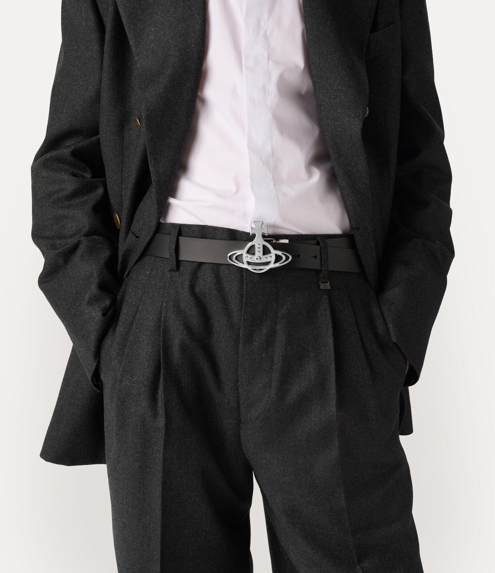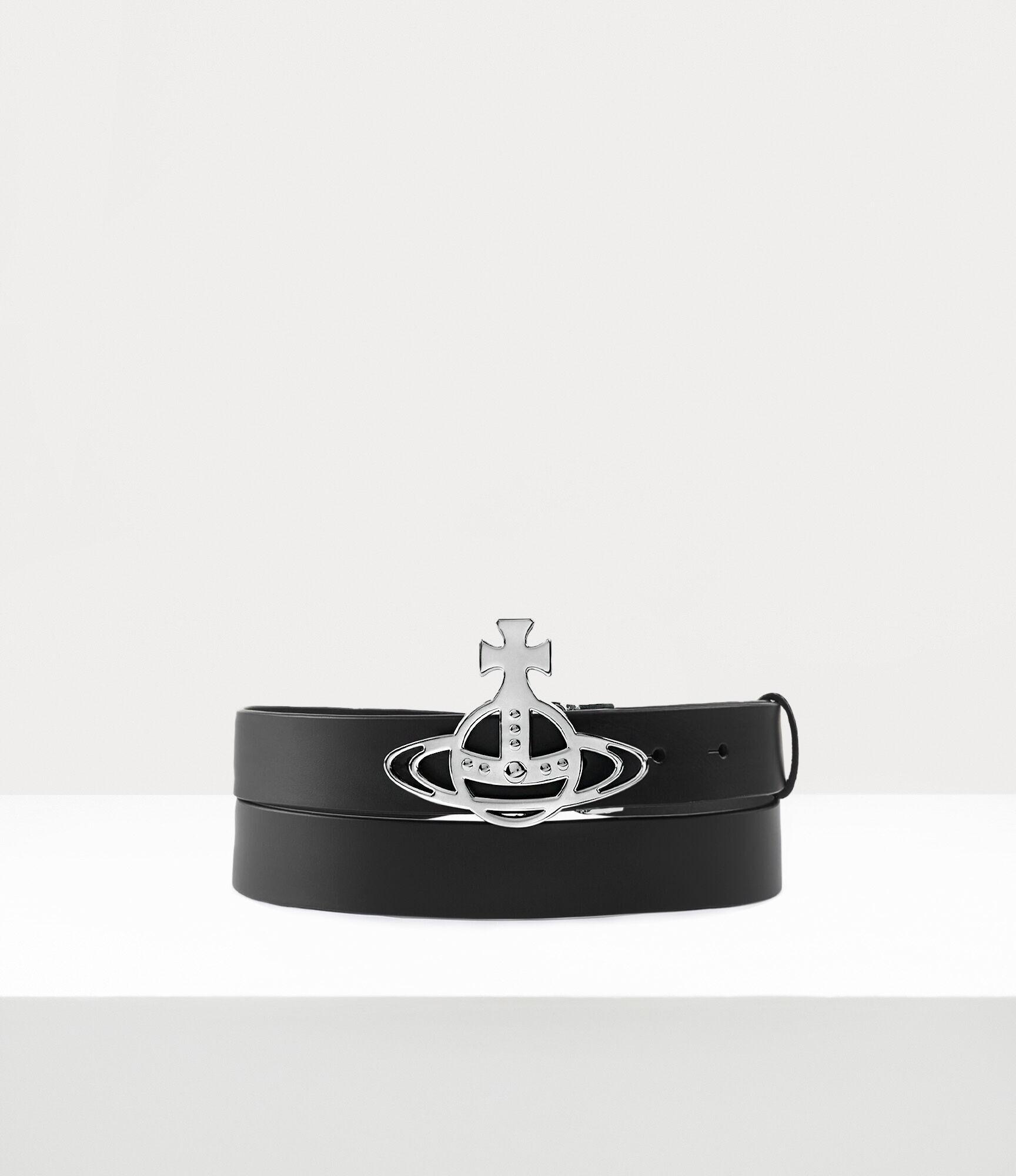 Our Line Orb Buckle belt features polished silver-tone plating, adorned with our 'Line Orb' motif at the buckle closure, which represents tradition, encircled by the celestial rings of Saturn, which symbolise the future. The design offers a smooth leather strap, complete with punch-hole detailing.