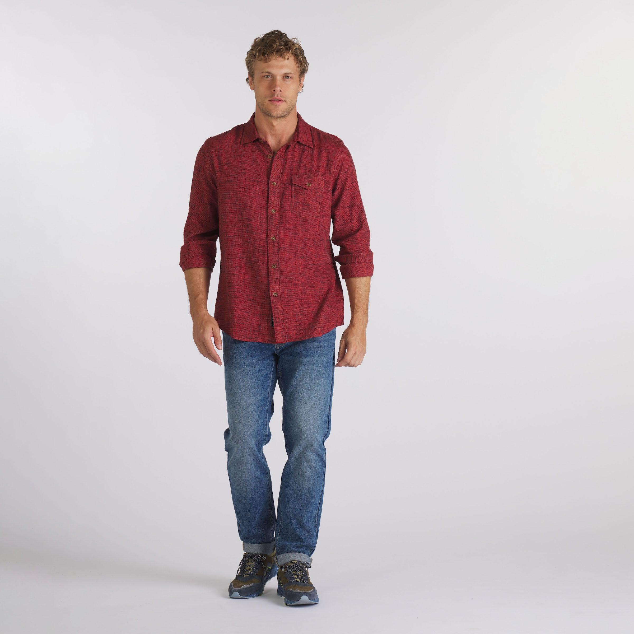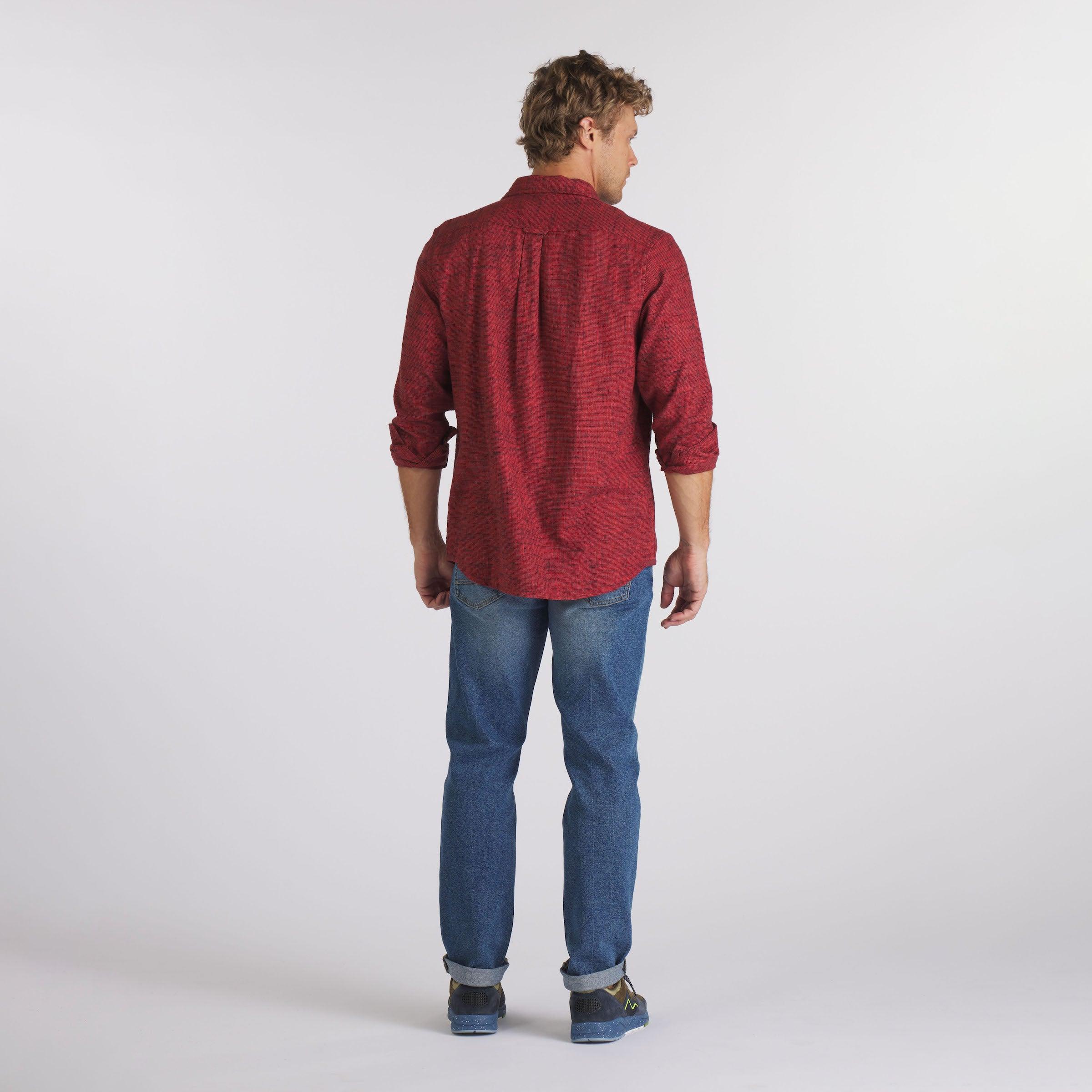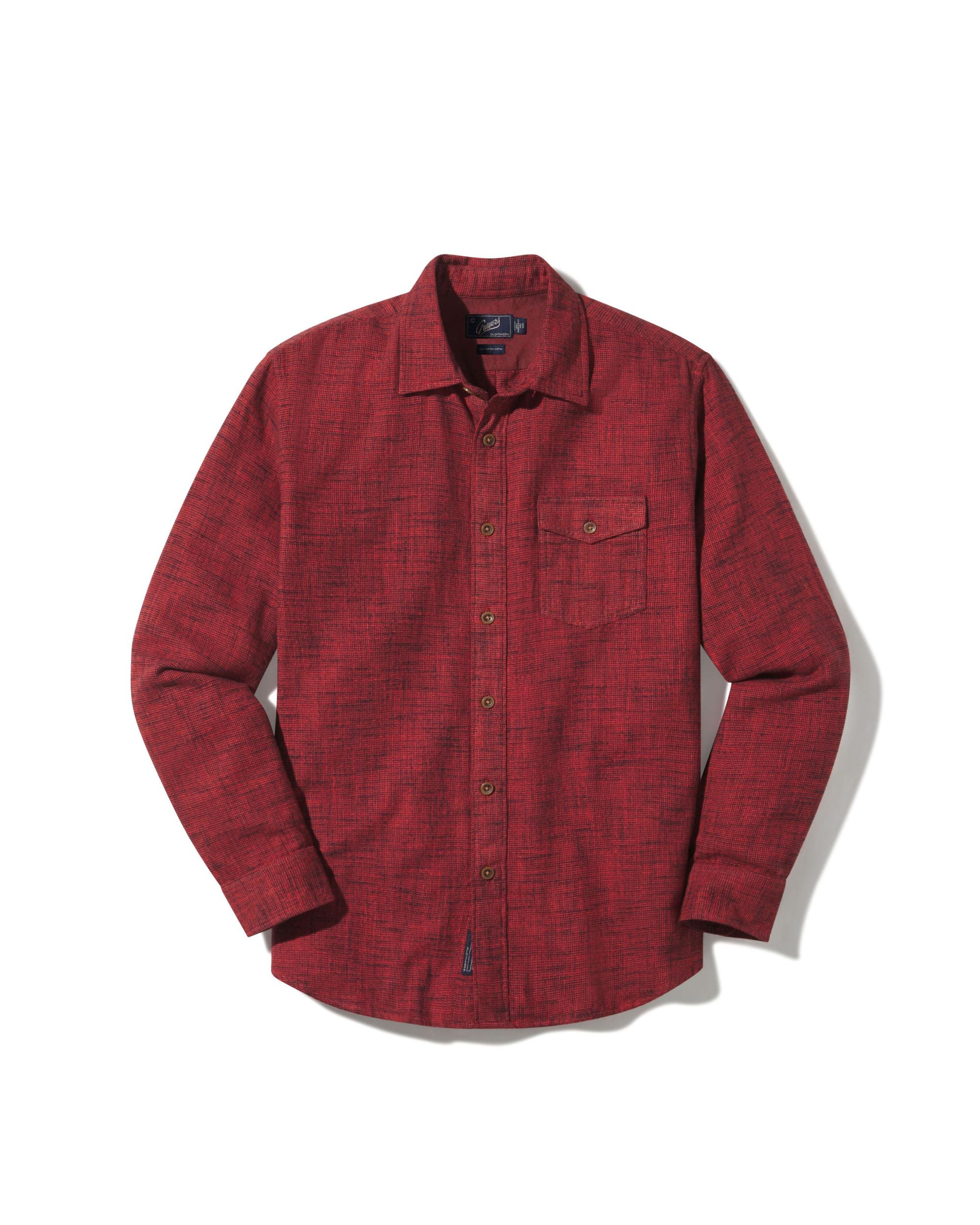 The non-solid "solid" shirt of the season. This ultra-soft midweight brushed twill is the ideal year-round weight. A fine subtle dobby pattern is over-dyed with our new seasonal fall colors. Accented with a workwear flap chest pocket, wear it casually with denim or chinos or elevate it under one of our unconstructed blazers. The Model is also wearing: Edward Stretch Straight Fit Denim - Vintage Wash Model: Chris is wearing size medium and is 6'. ----Details---- Spread collar Button through flap chest pocket Chambray trimmed yoke and placket 5 oz (Lightweight) fabric Garment dyed Imported ----Materials---- 100% Cotton ----Size & Fit---- Measuring Method: All measurements are in inches and based on a “flat” garment, as shown below. For comparison with one of your existing garments, please lay garment on a flat surface and follow the key measurement points. For chest and neck, if you double the flat measurement, you will get close to the full body measurement. ----Care---- Machine Wash Cold Separately Do Not Soak Before Washing Do Not Bleach Remove Promptly Tumble Dry Low Cool Iron If Necessary