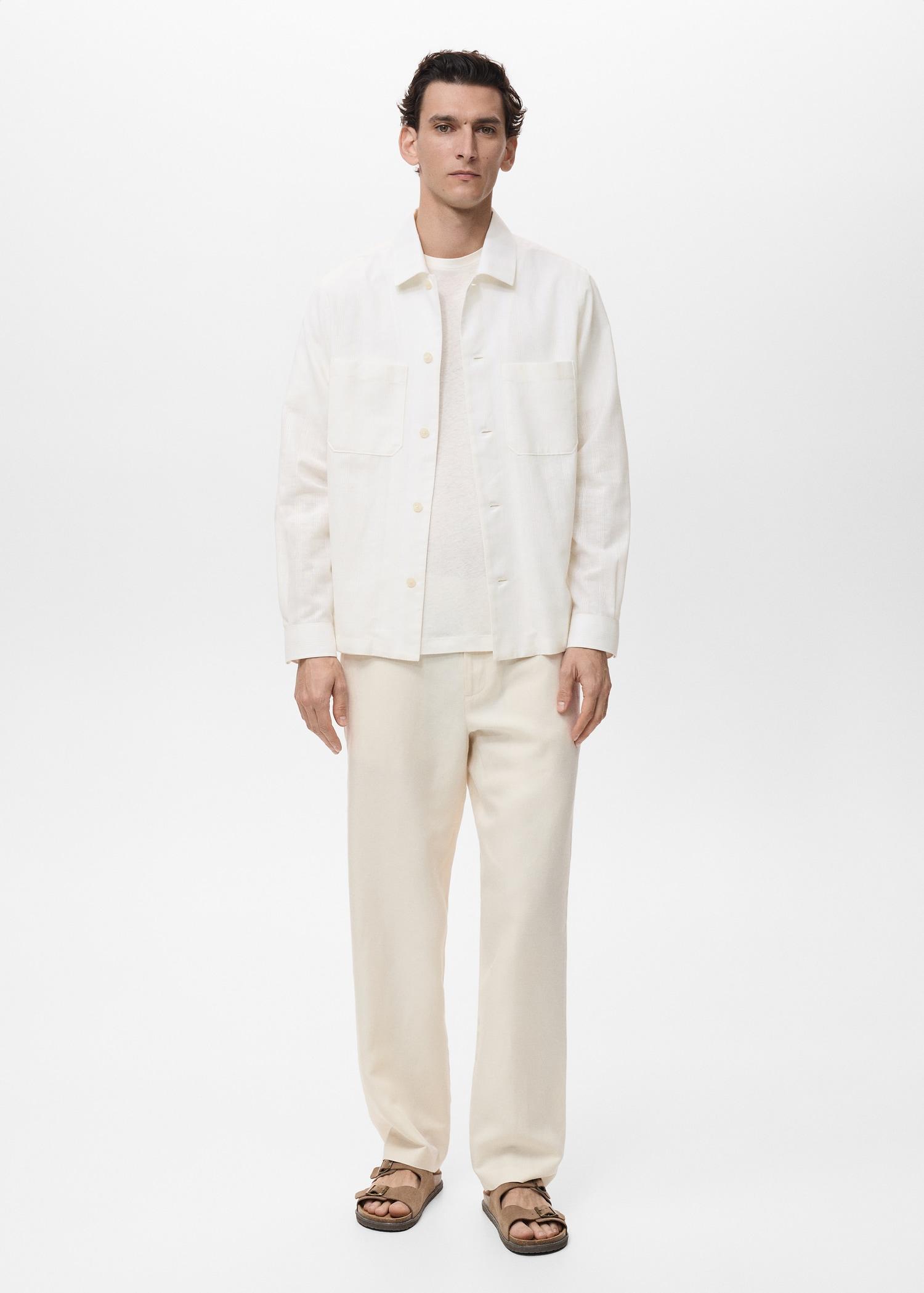 Linen-blend overshirt with pockets - Men | MANGO USA
