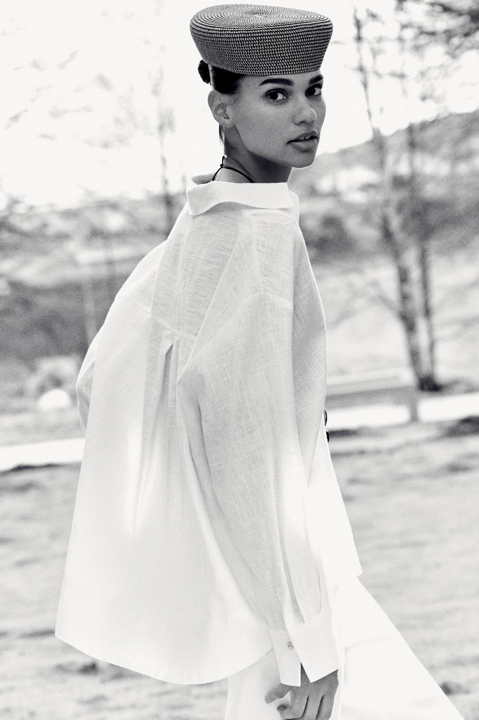 LINEN BLEND POLO COLLAR BLOUSE