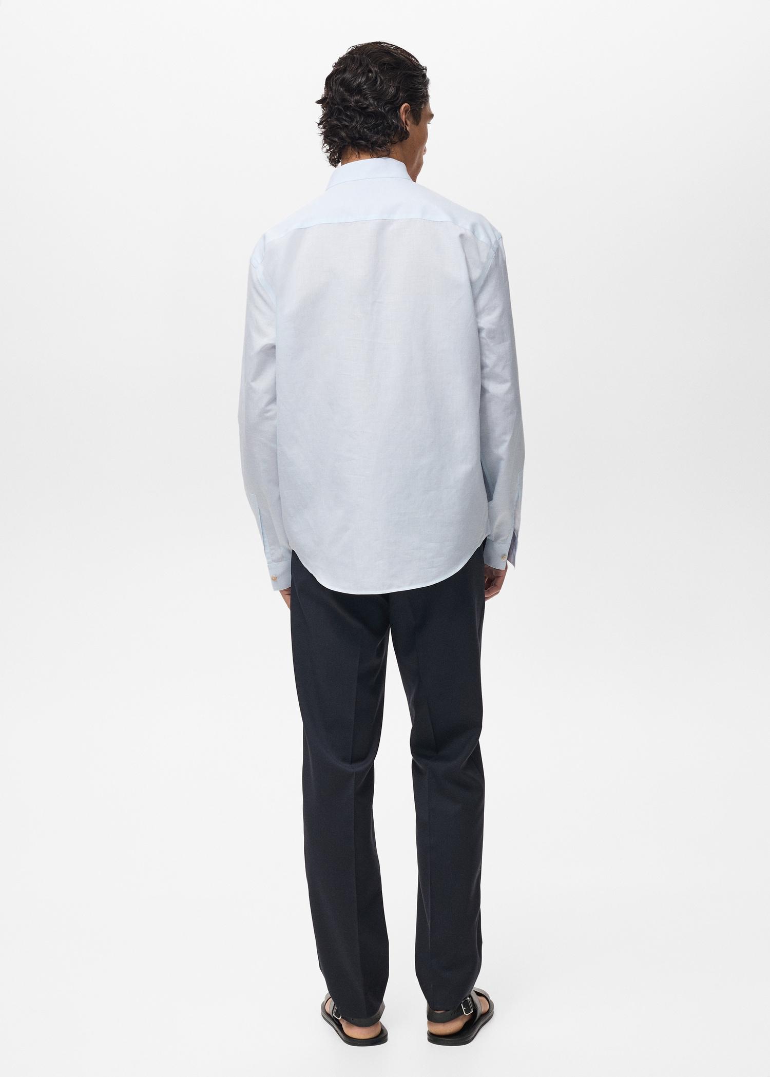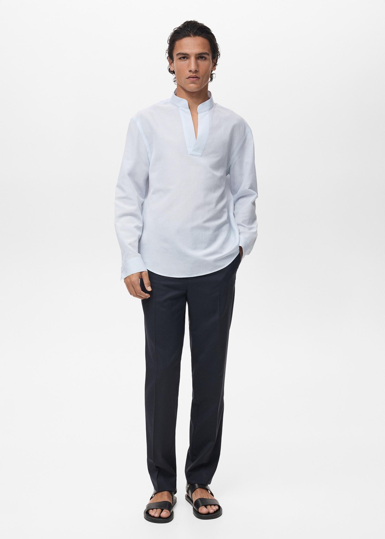 Selection Collection. Regular fit. Mandarin collar. Cotton and linen blend fabric. Mandarin collar without buttons. Long sleeves. Buttoned cuffs. Rounded hem. Model is 190 cm and wears size M. Back length 31.69 in. A collection of classic garments with minimalist lines and carefully designed to detail, made with high quality fabrics for a timeless and stylish closet.
