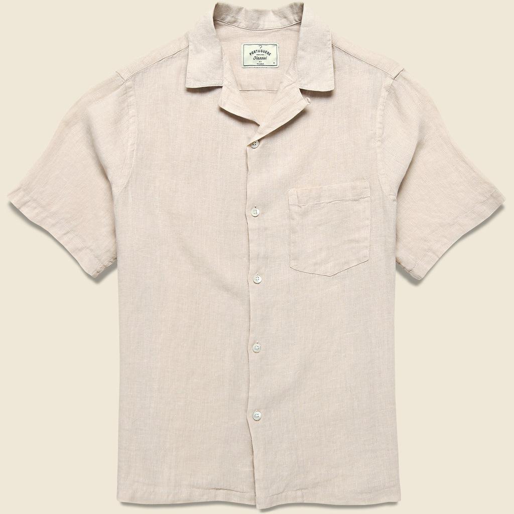 The Linen Camp Shirt from Portuguese Flannel is cut from lightweight, breezy linen to keep you nice and cool on warm, sunny summer days. It’s tailored with a perfectly relaxed fit that runs true to size and comes with a single chest pocket, squared hem, and a classic camp collar for a laid-back ‘50s look and feel.