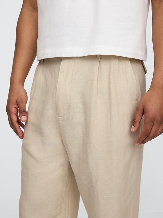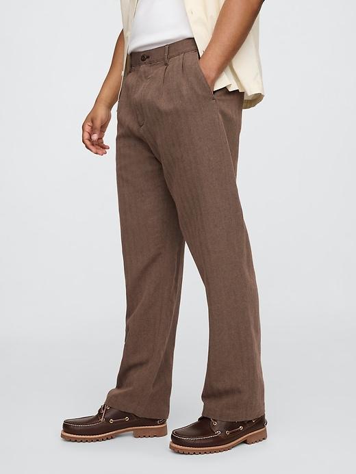 Soft linen-cotton loose pleated khakis. Button closure, zip fly. Front slant pockets, back welt pockets. Responsibly Made: This khaki is part of our water-saving Washwell program. Compared with conventional wash methods, Washwell uses at least 20% less water. This product was made in a factory that invests in gender equality and women’s empowerment. Through RISE (Reimagining Industry to Support Equality) and Gap Inc.’s program P.A.C.E. (Personal Advancement & Career Enhancement), we support people who make our clothes to build the skills, knowledge, confidence, and resilience needed to advance in work and life. Learn more here. #726540