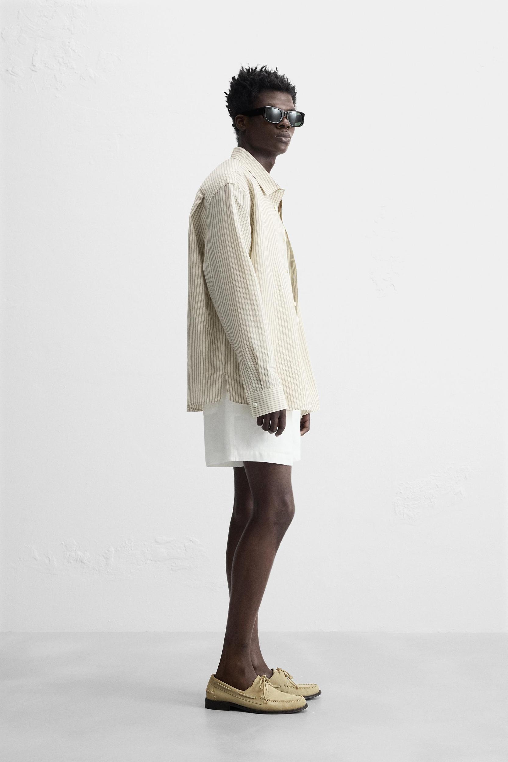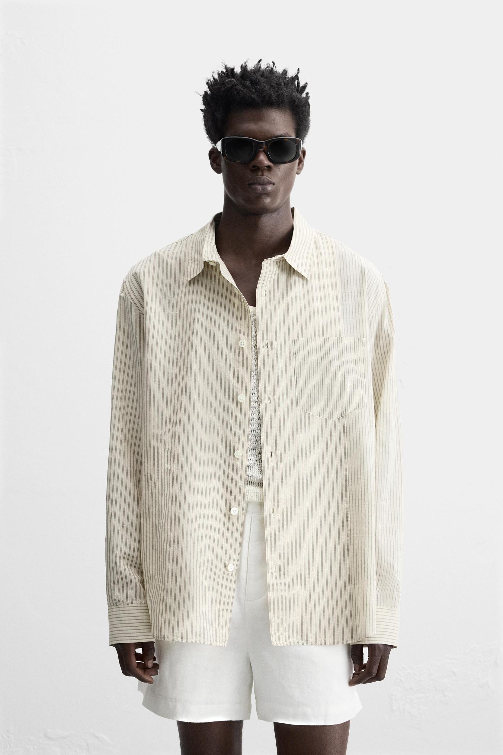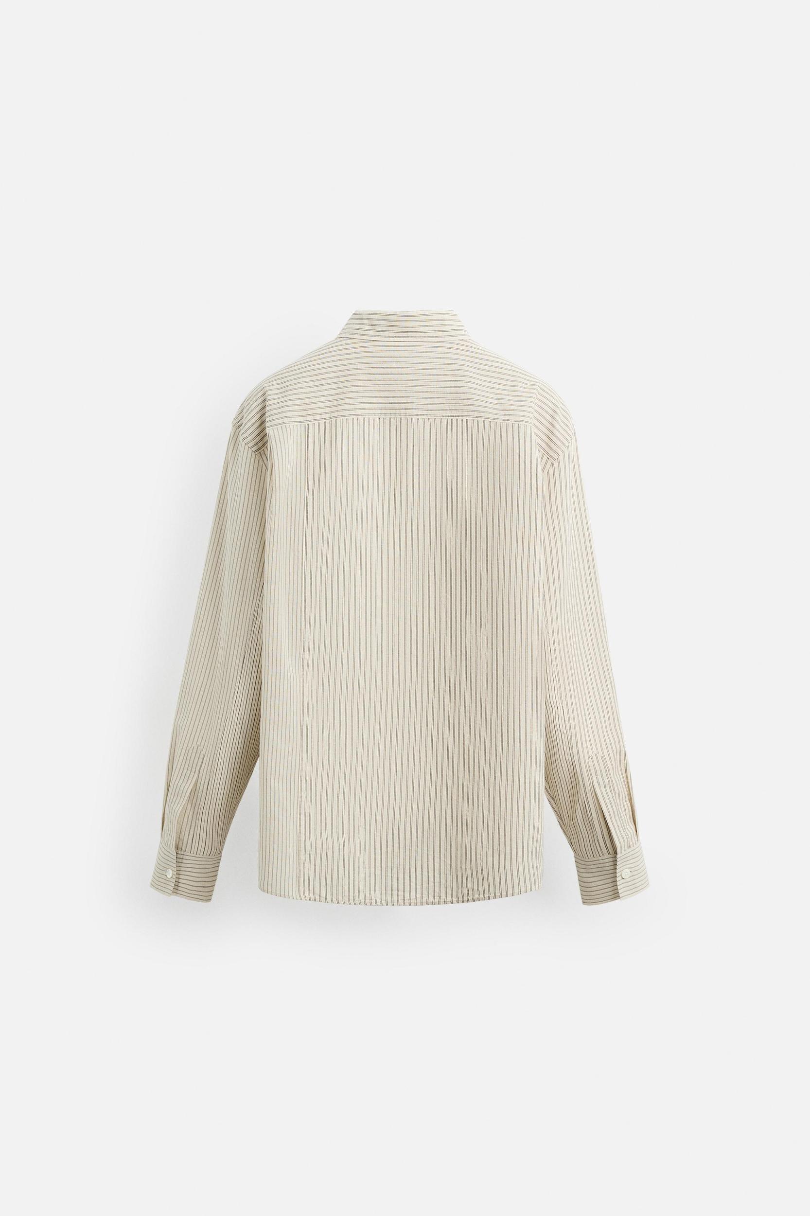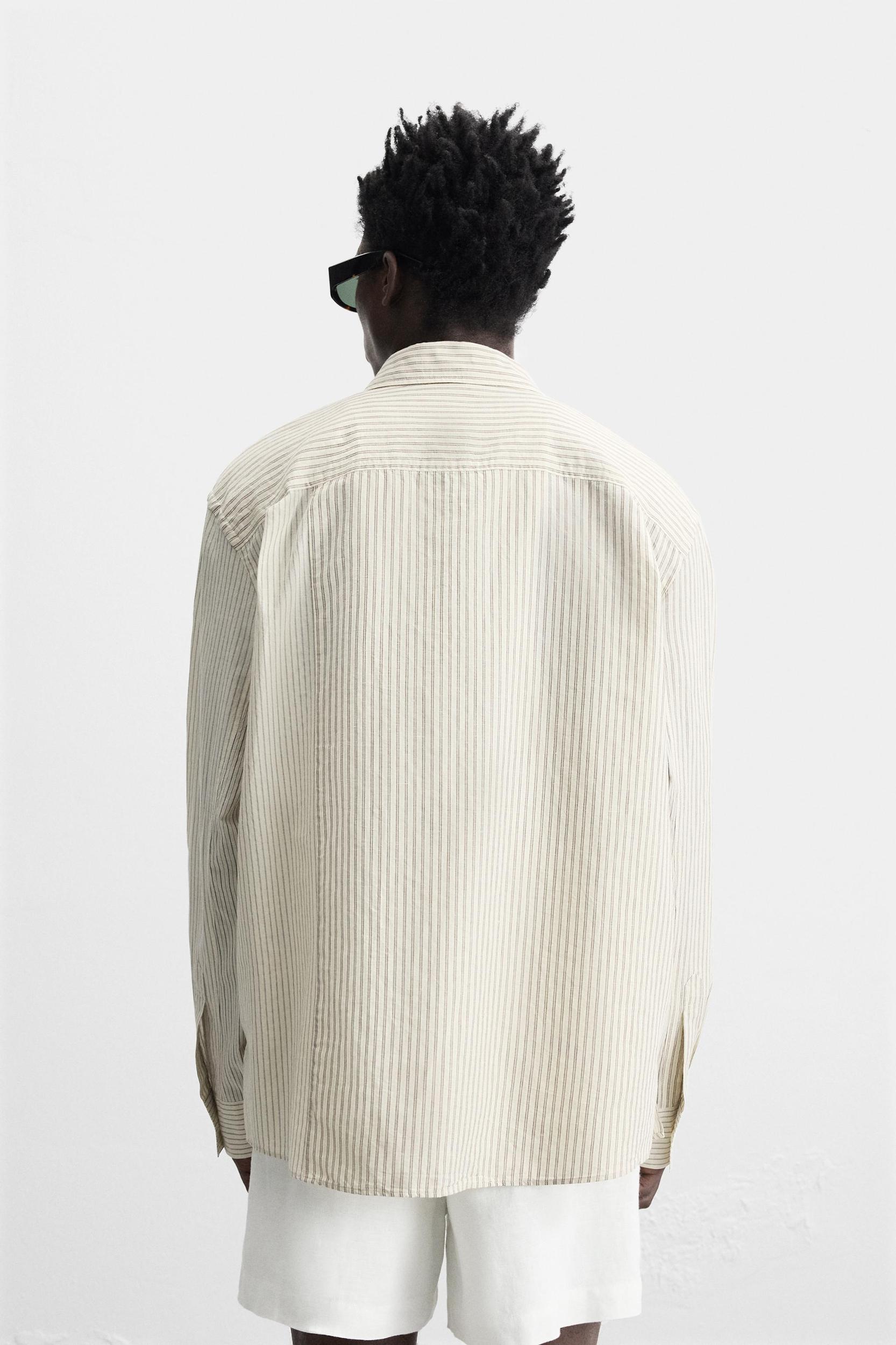 LINEN-COTTON STRIPED PATCHWORK SHIRT