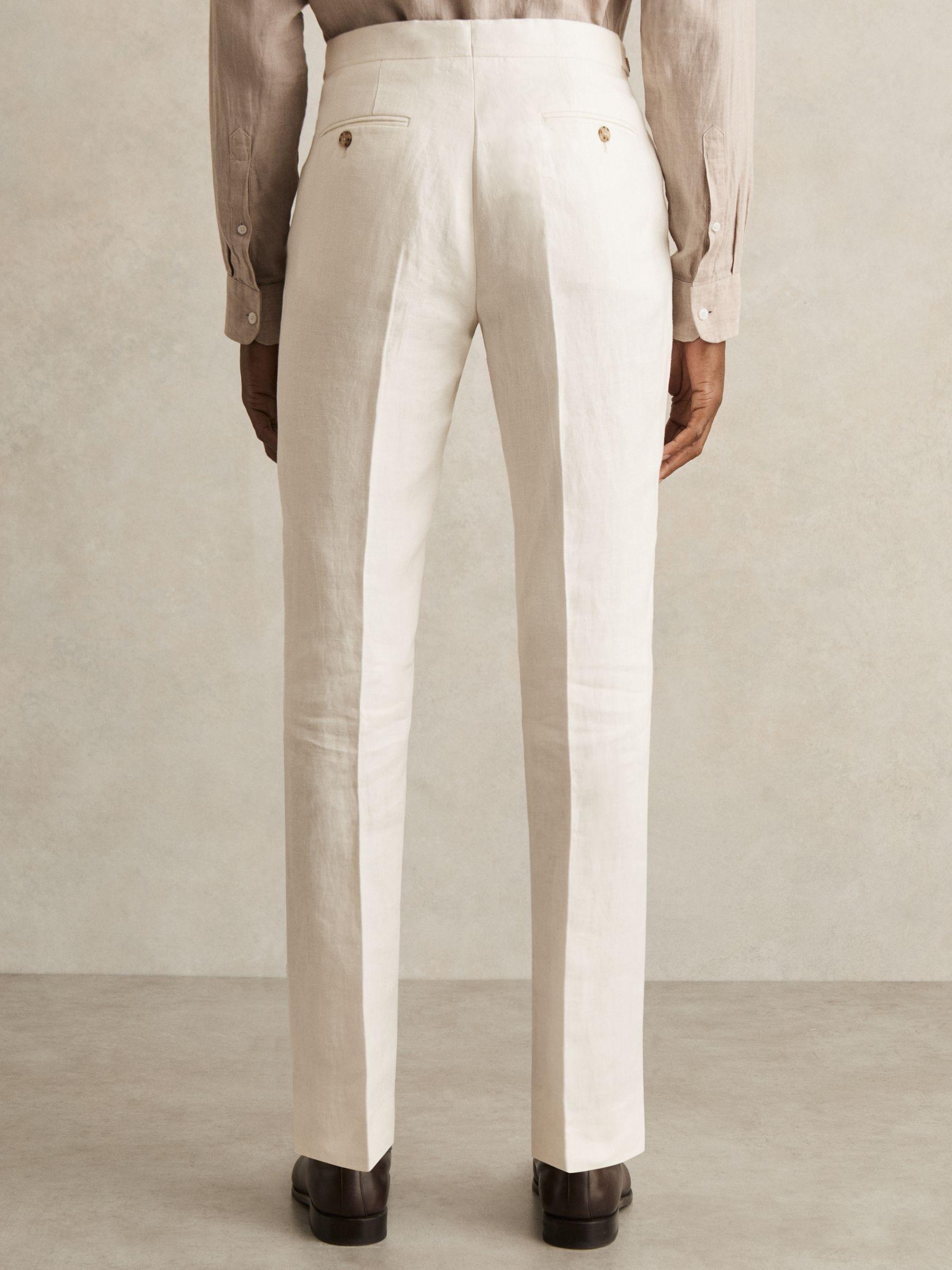 The Park suit trousers epitomise summer suiting, crafted from 100% linen and subtly enhanced by a refined herringbone weave. Cut to a slim fit, they feature buttoned side adjusters for a customisable waist. 100% linen. Herringbone weave. Slim fit. Side adjusters. Button welt pockets to reverse. Hook-and-bar with zip.