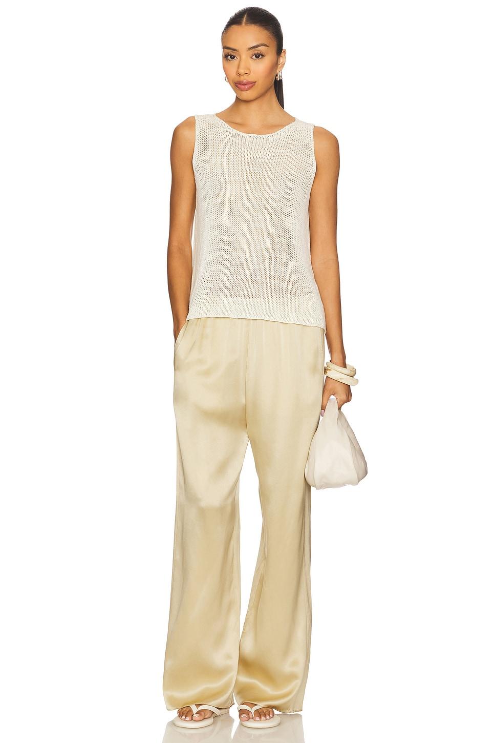 100% linen. Hand wash. Pull-on styling. Open knit fabric. Garment is made with a semi-sheer fabric, undergarments can show through. Made in China. Revolve Style No. ENZA-WS1289. Manufacturer Style No. LINO8169.